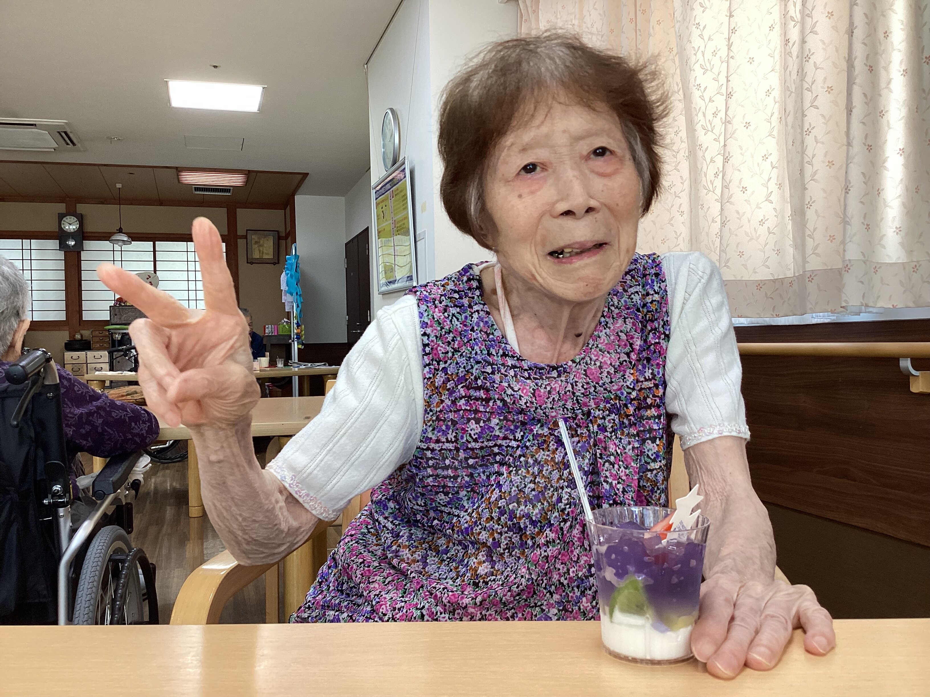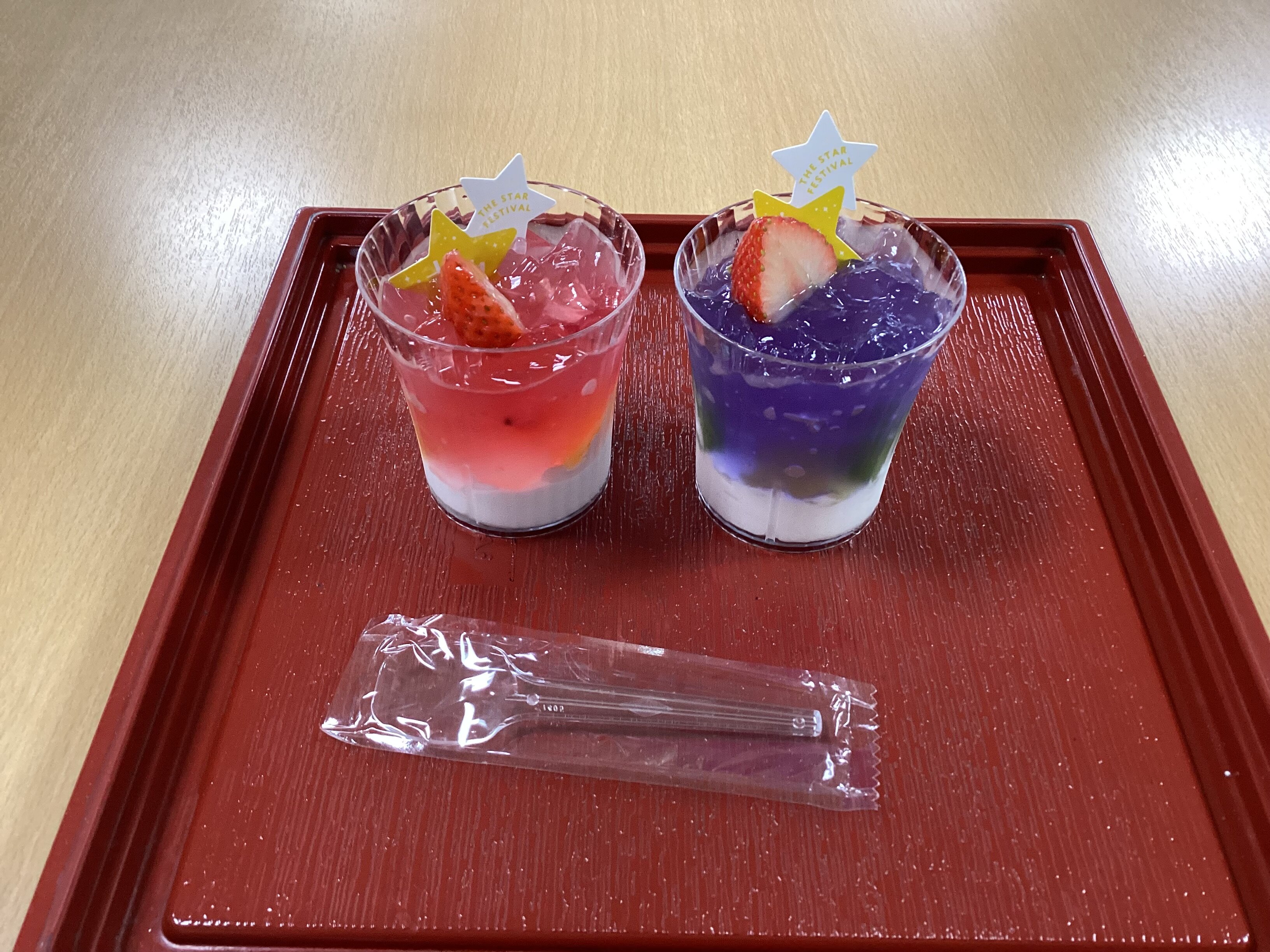 ご入居者の方々には色鮮やかな七夕ゼリーを提供させて頂きました。