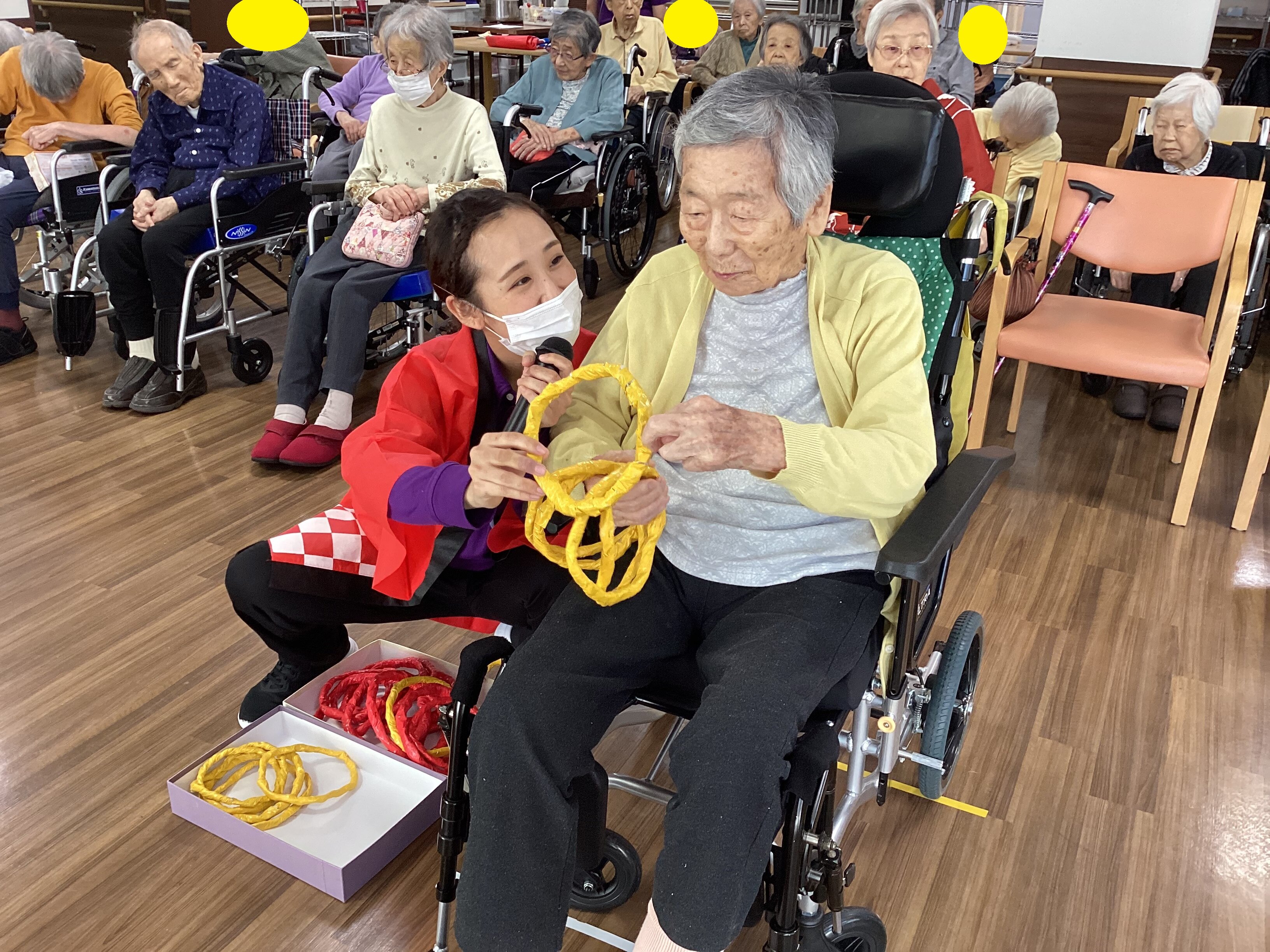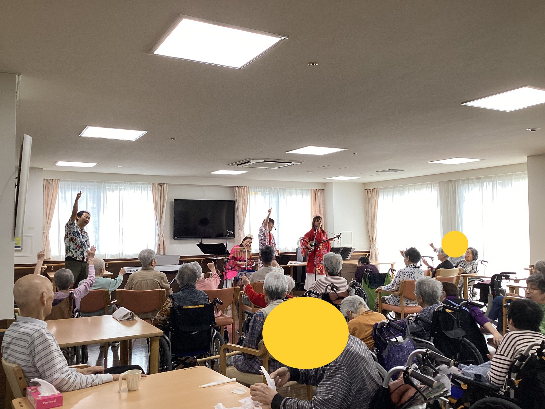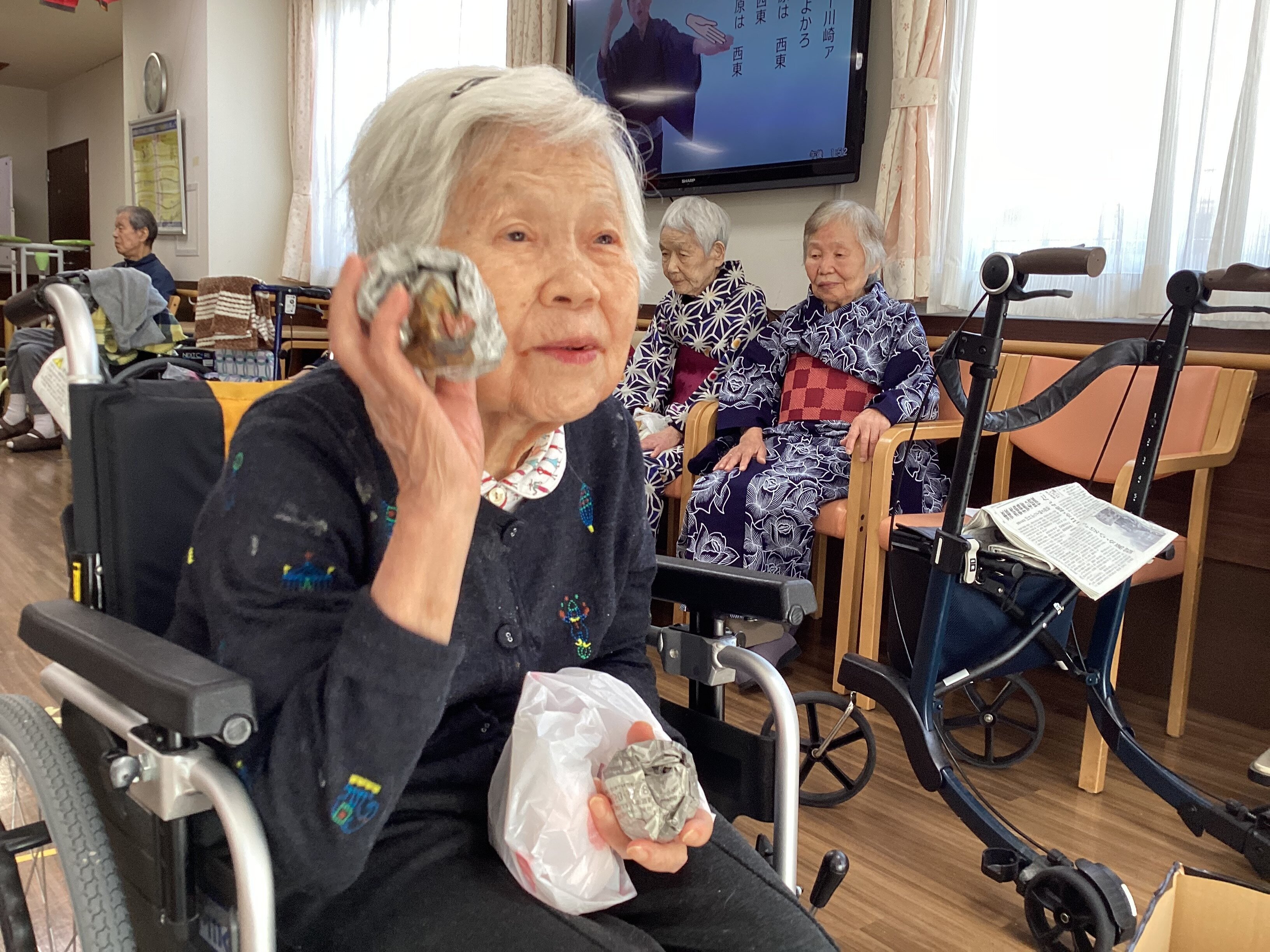 参加されているご入居者も鈴などの楽器を持ち、一緒に歌っています。