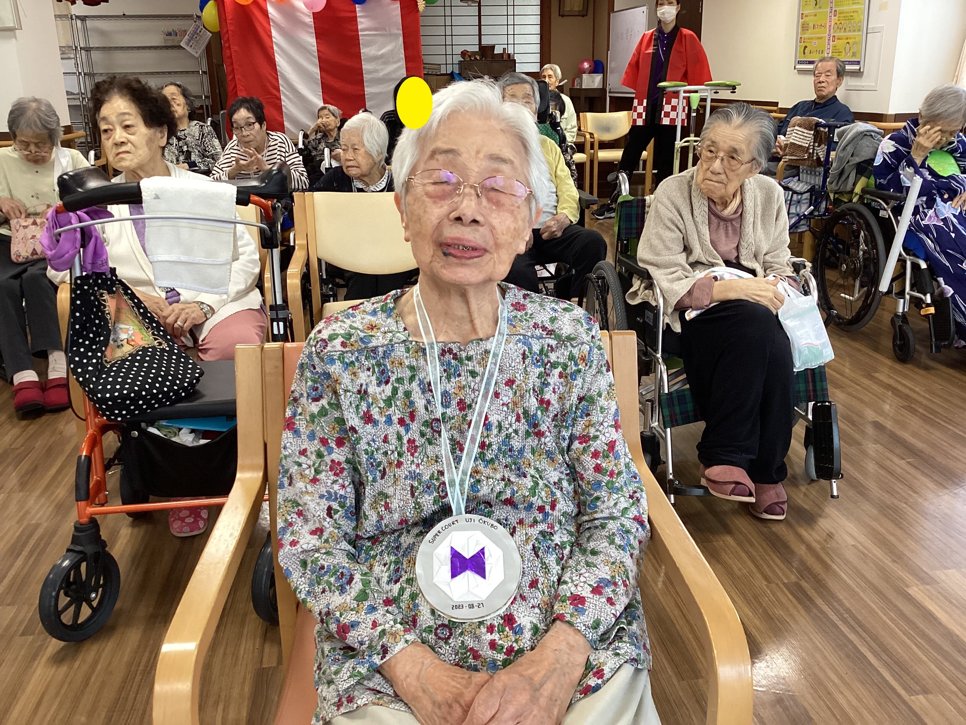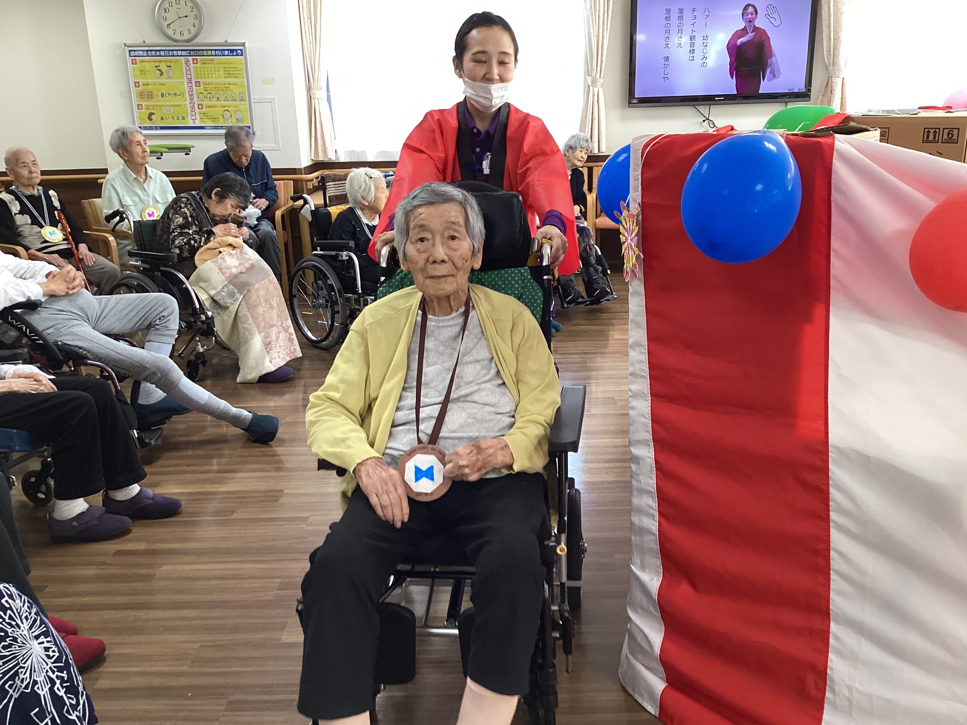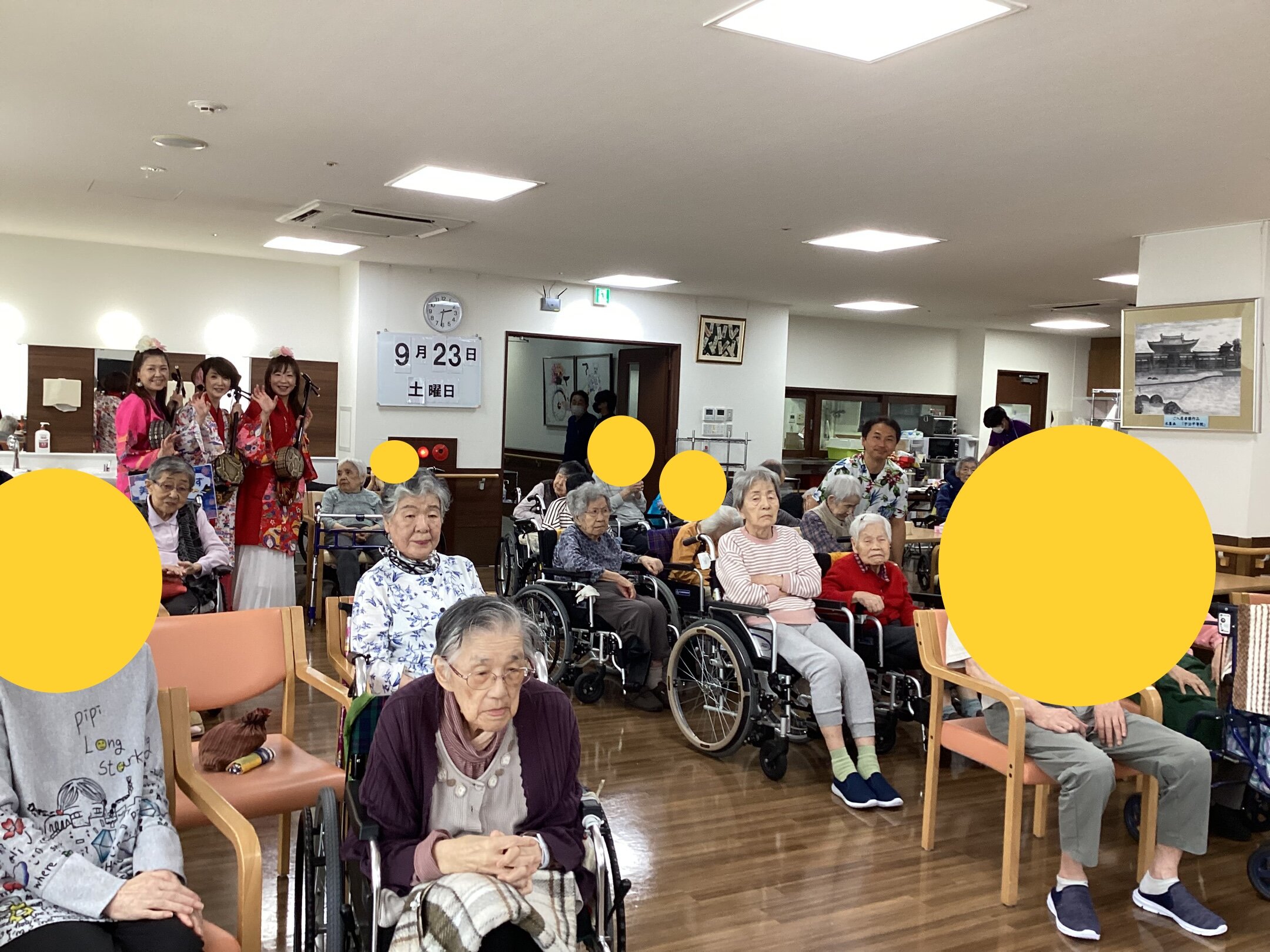 参加されているご入居者も鈴などの楽器を持ち、一緒に歌っています。