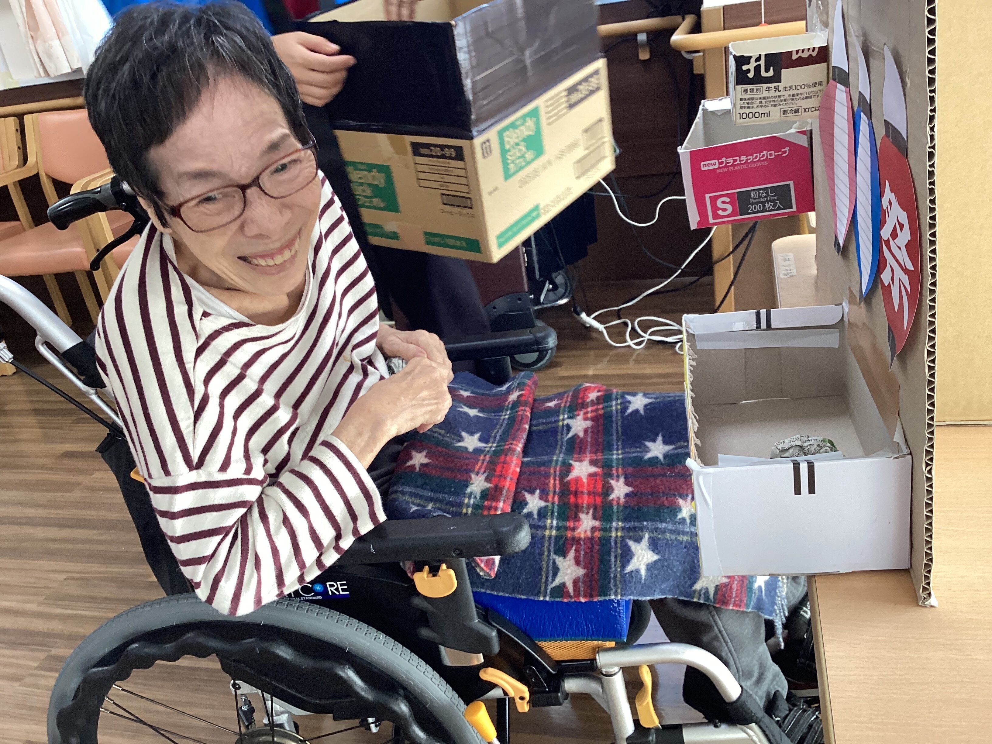 今月は18日が敬老の日なのでそれをテーマに、協力して製作を頑張っています☺︎☺︎