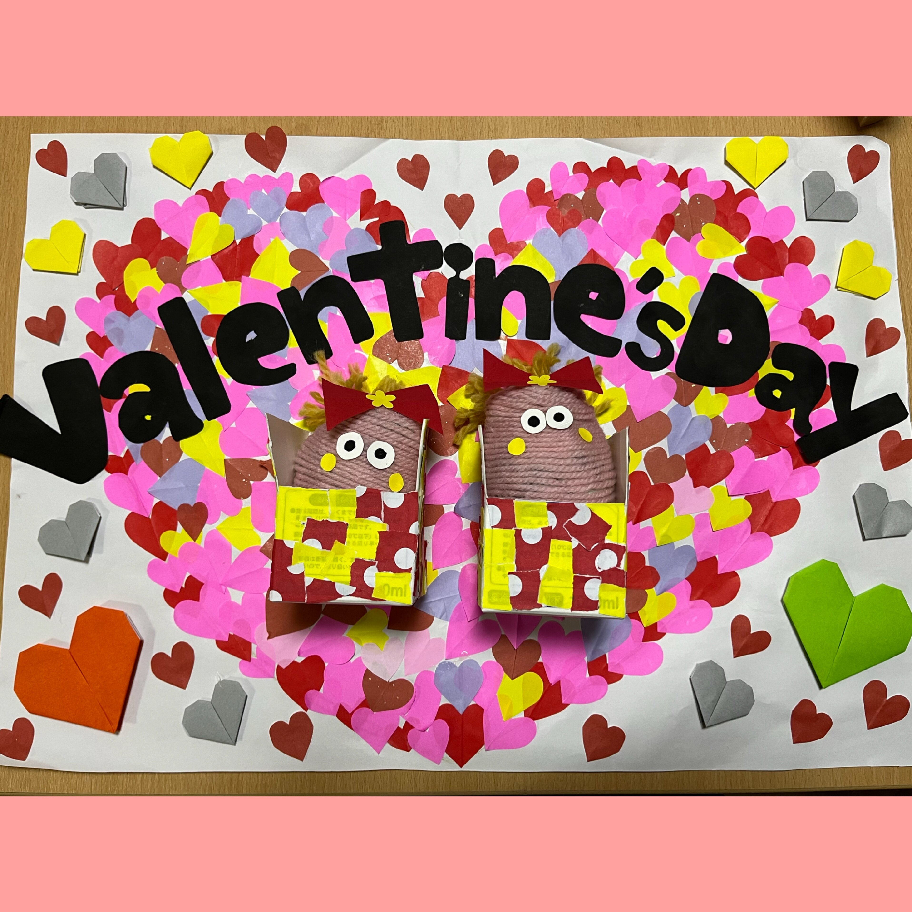 バレンタインらしい壁画を製作しました!!! 可愛らしさ全開です♡