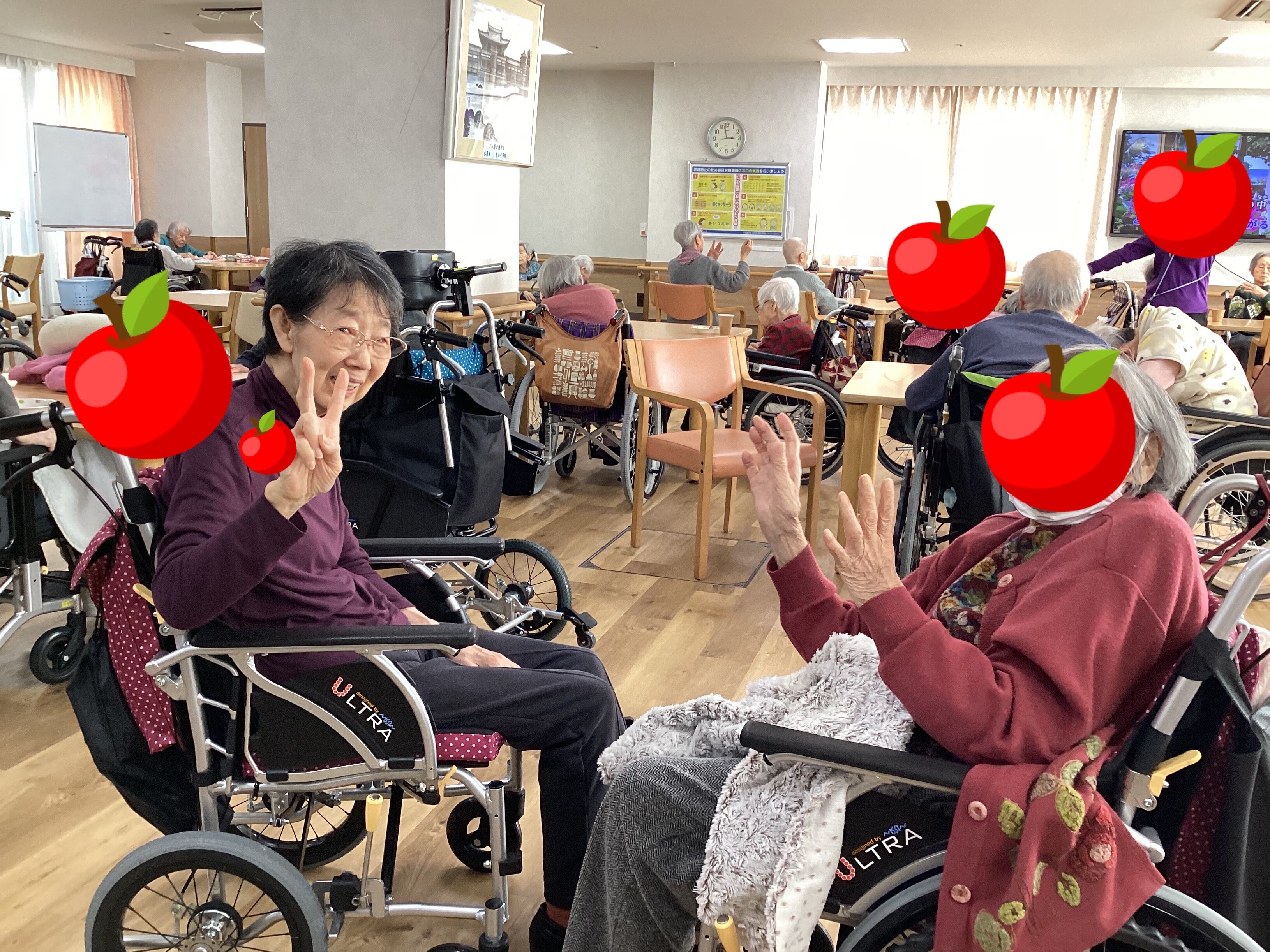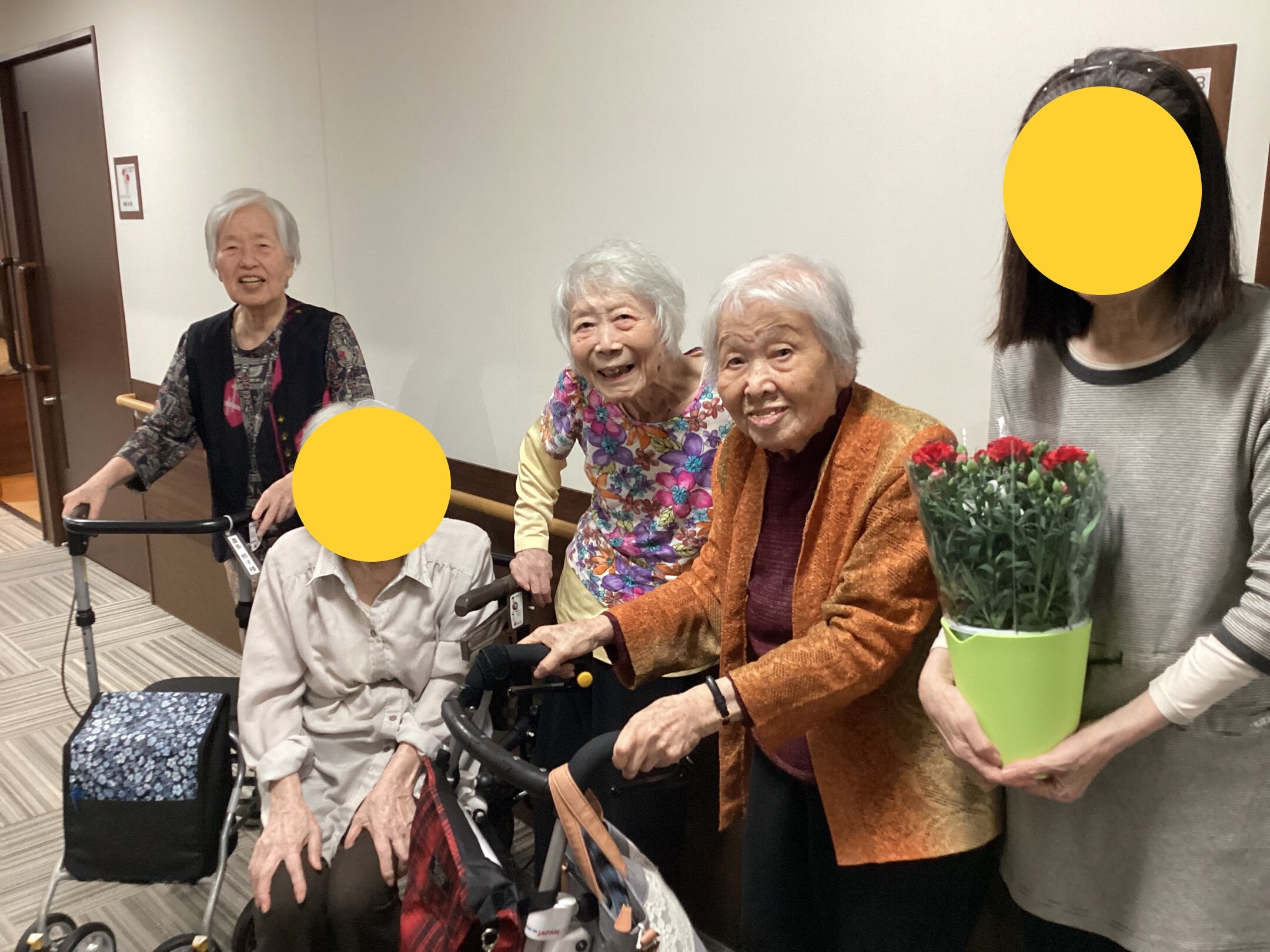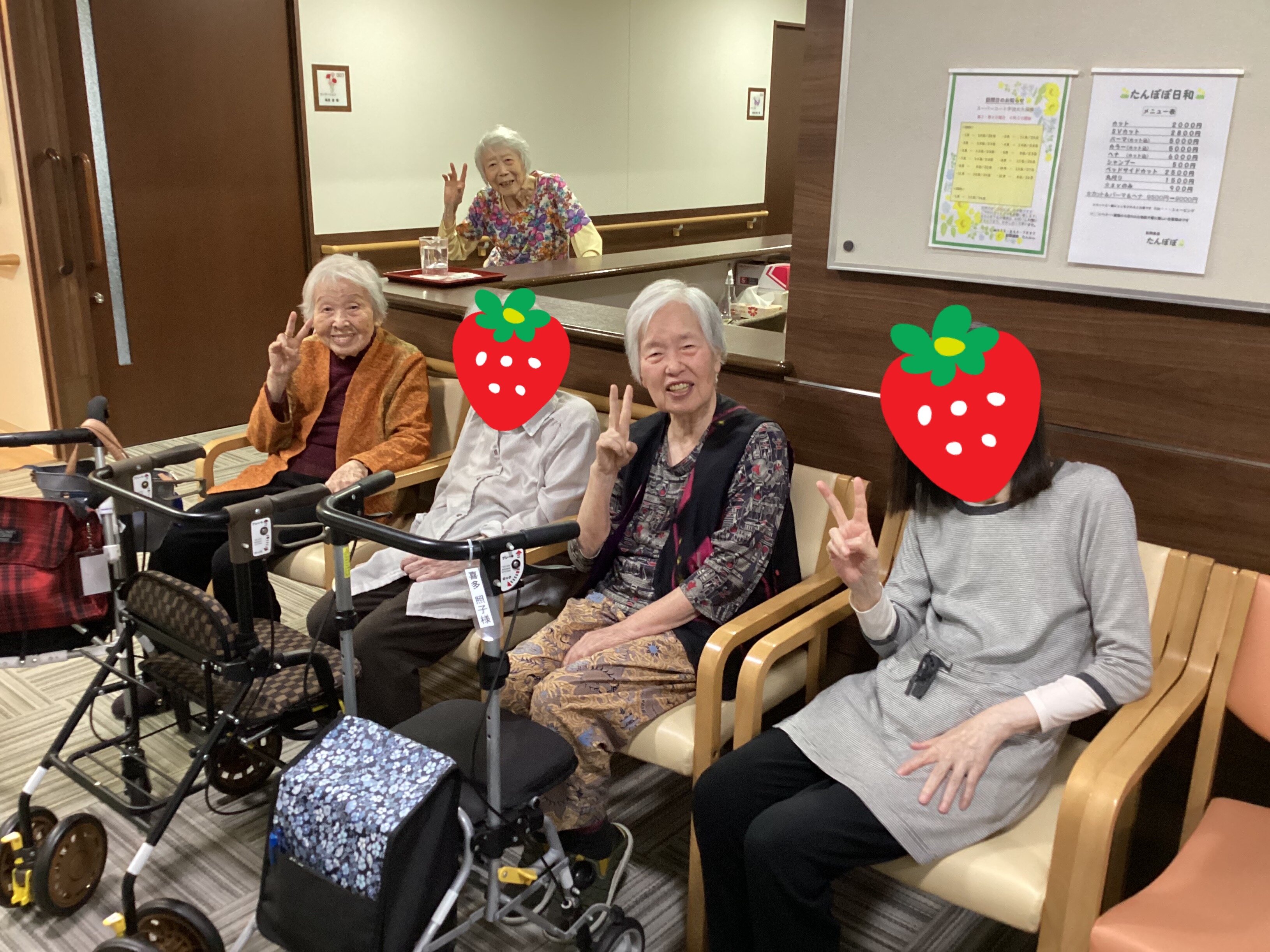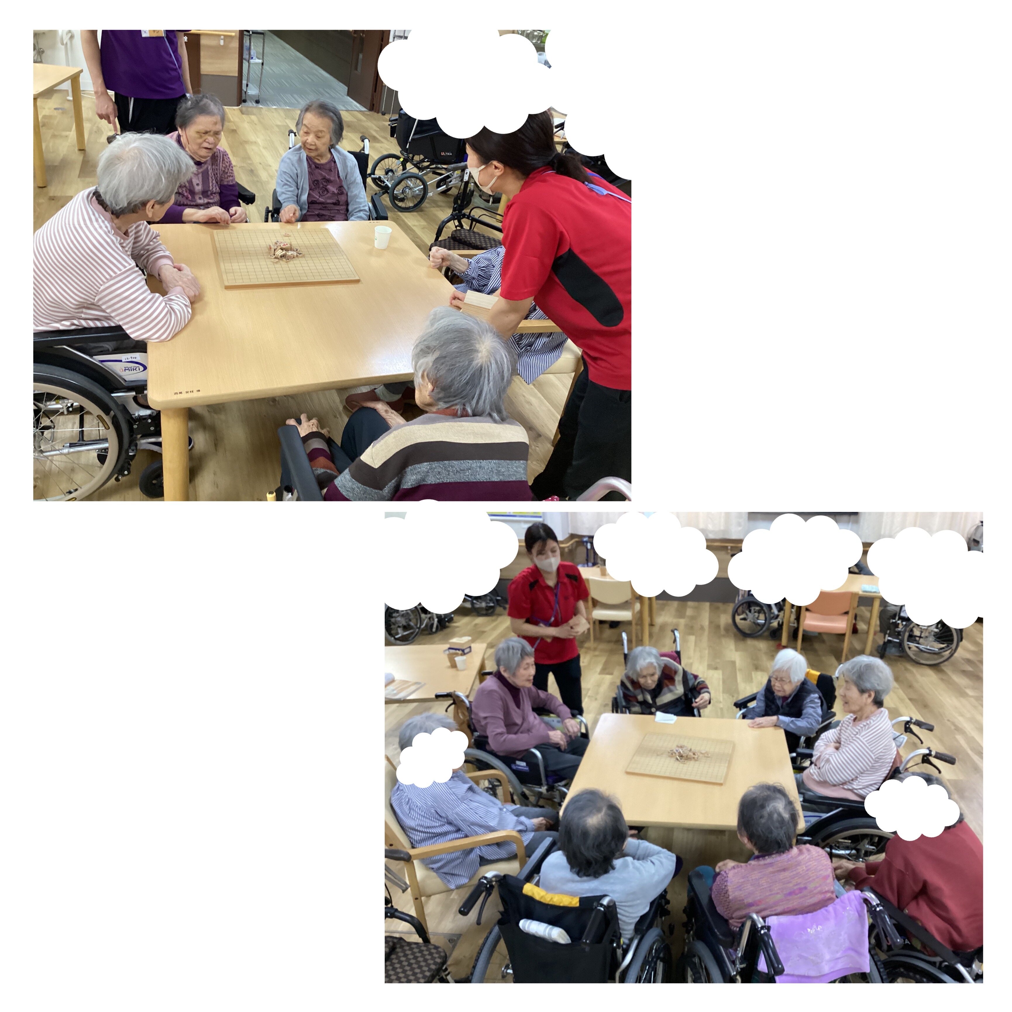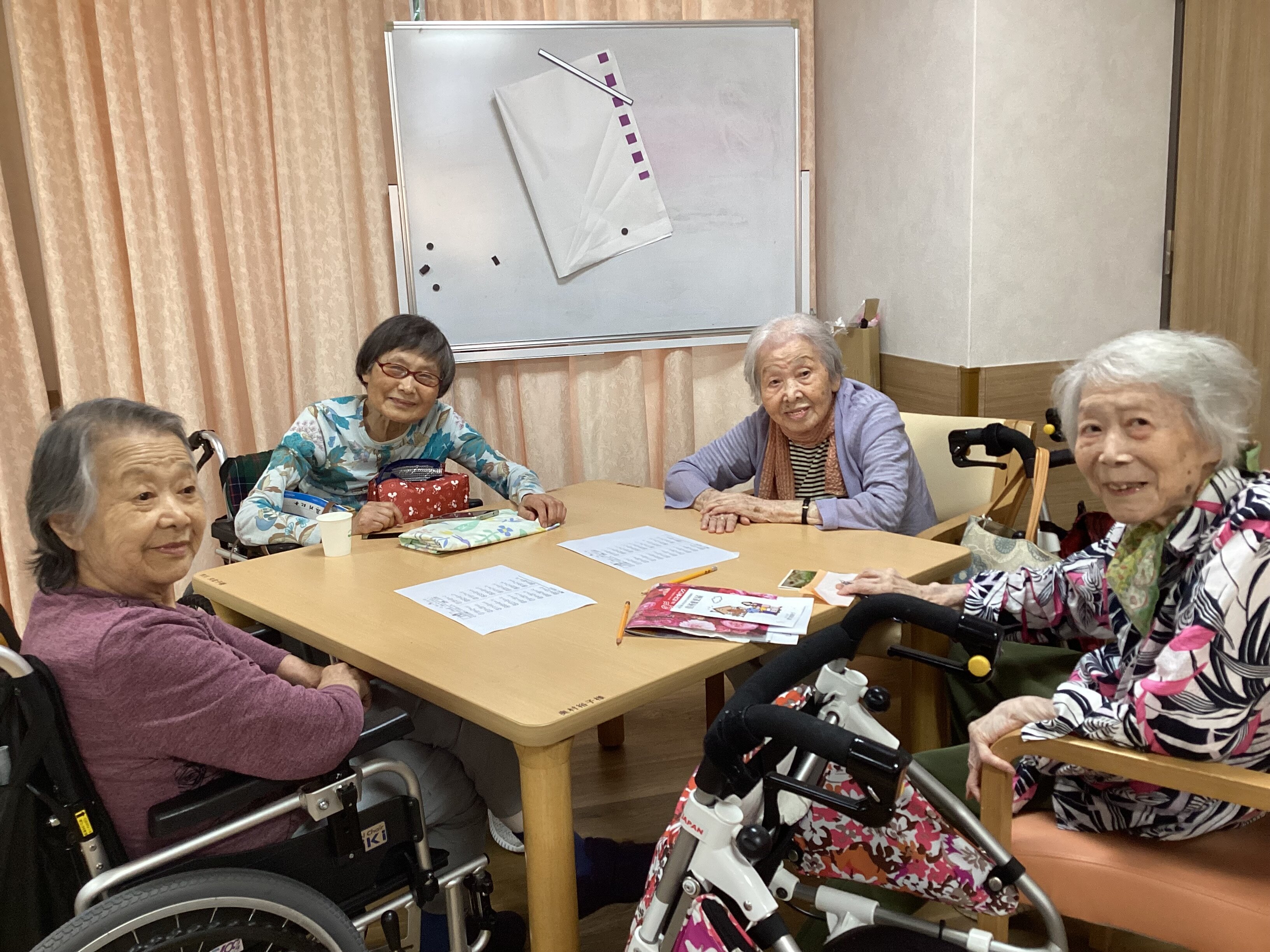 今日は食堂で過ごされているご入居者様にお集まりいただき、