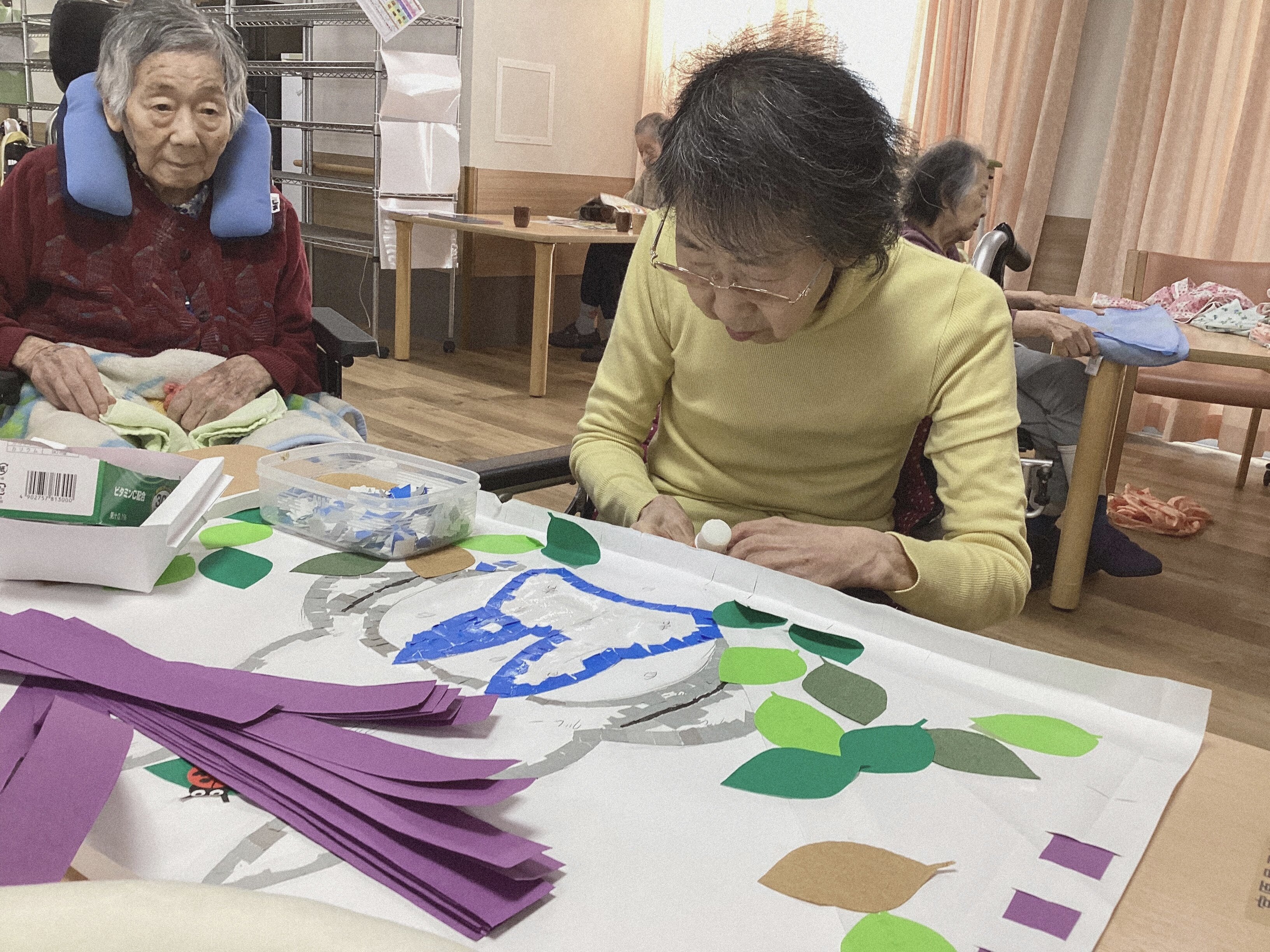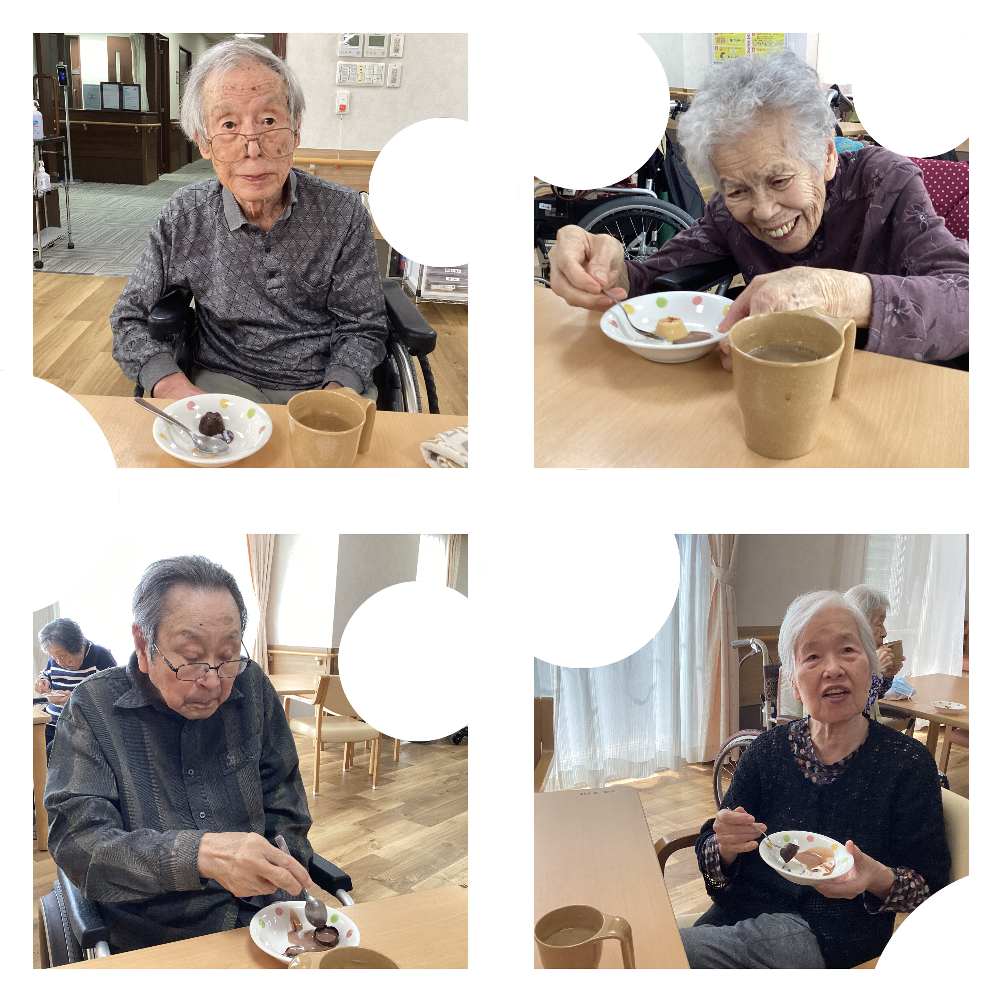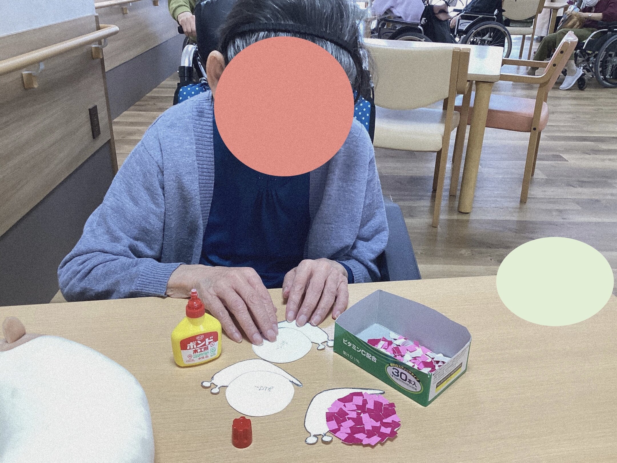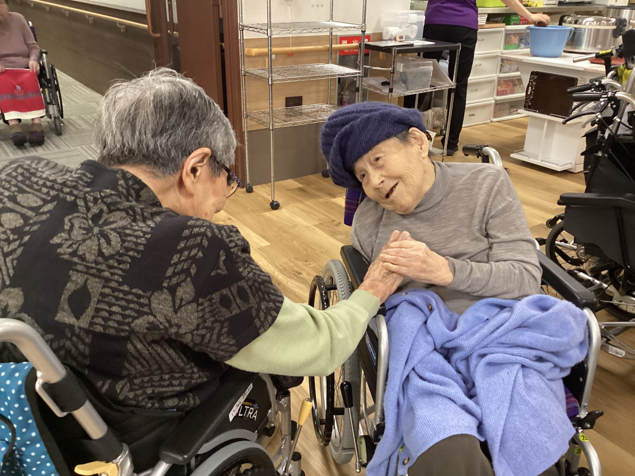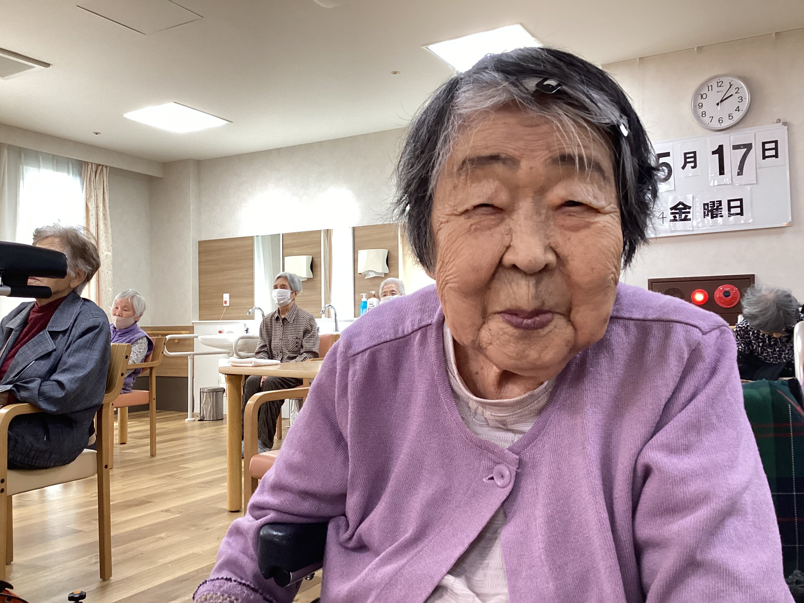 今日は食堂で過ごされているご入居者様にお集まりいただき、