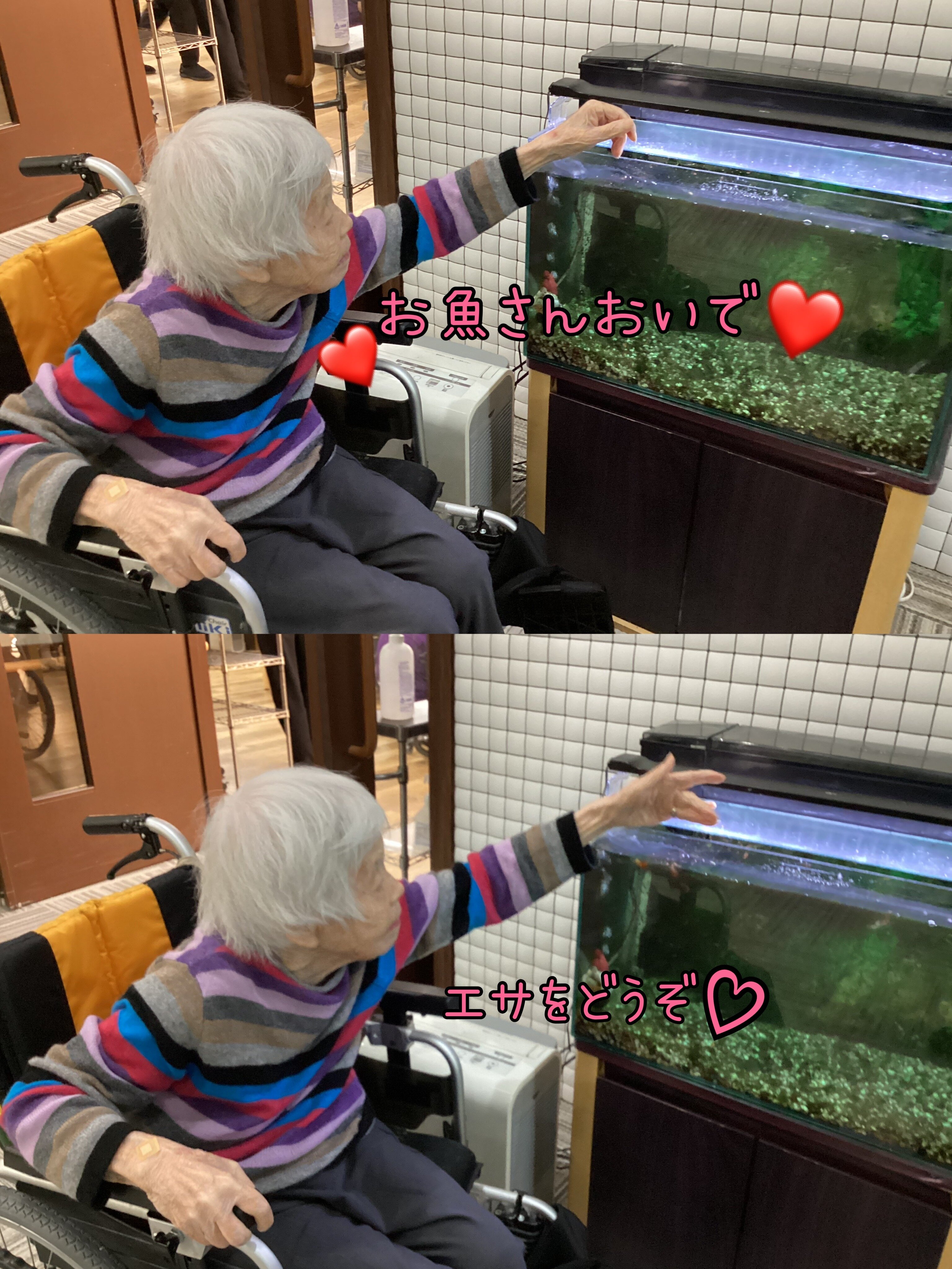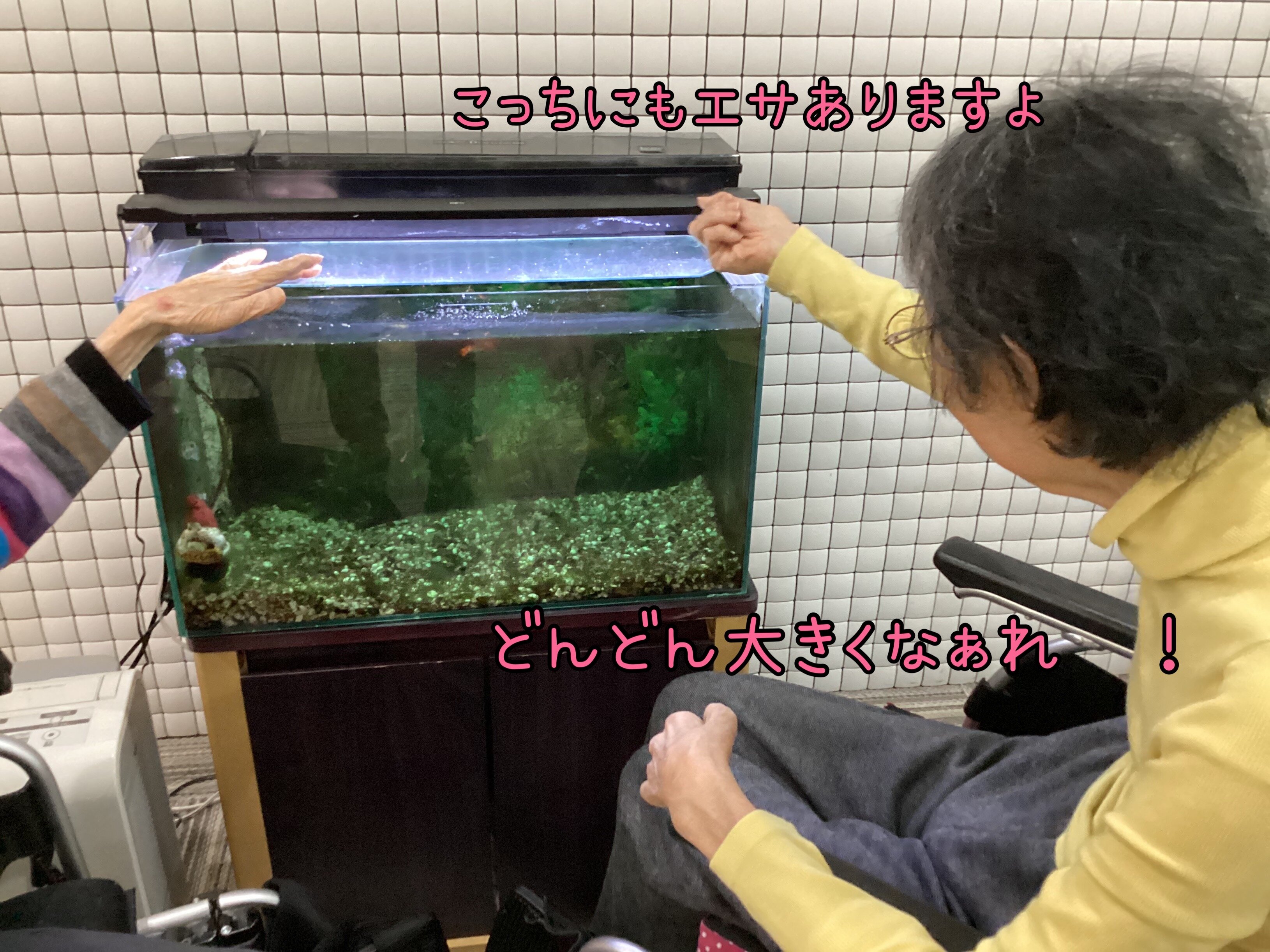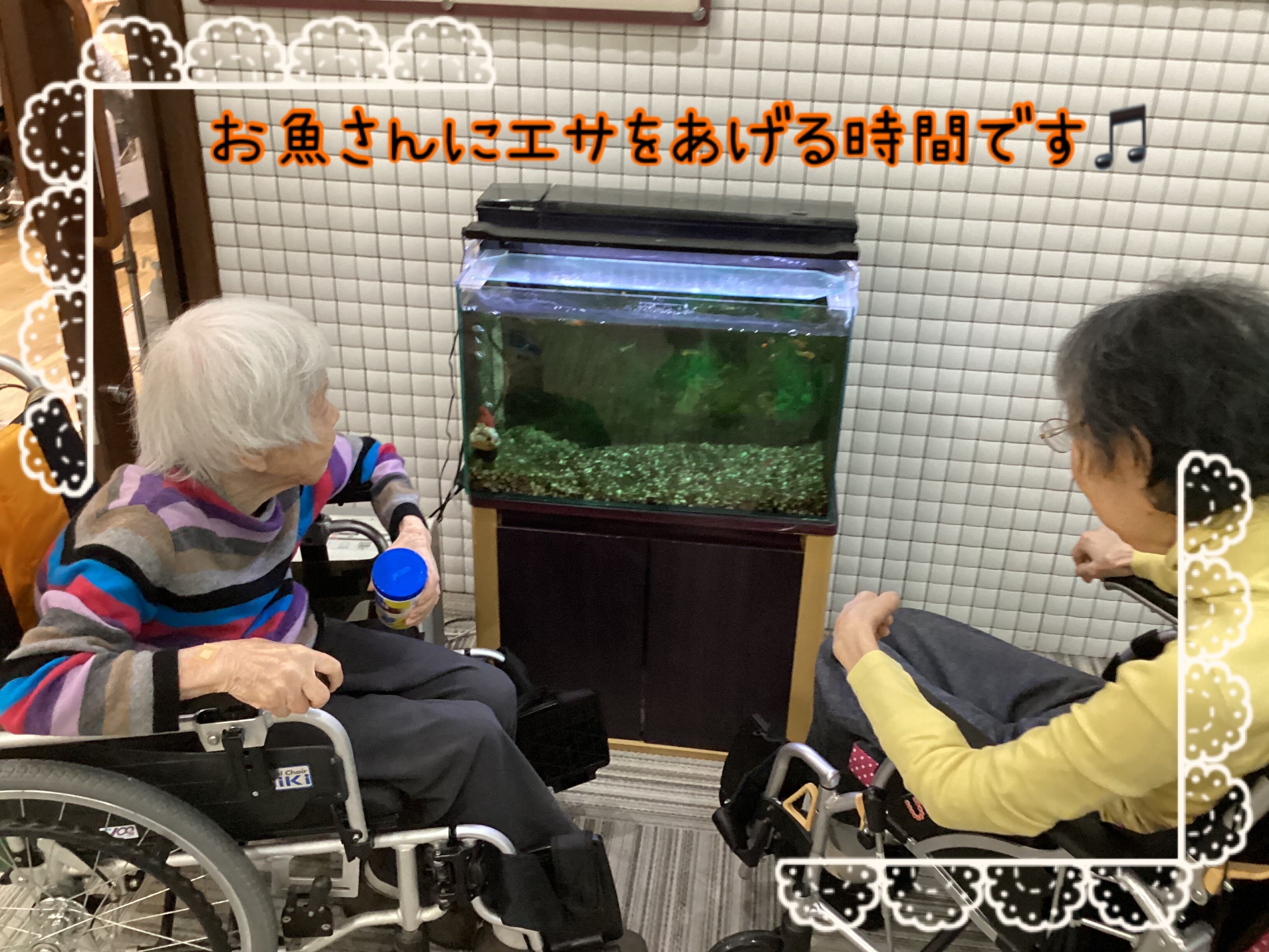 今日はご入居者様がお魚にエサをあげたい!との事で、