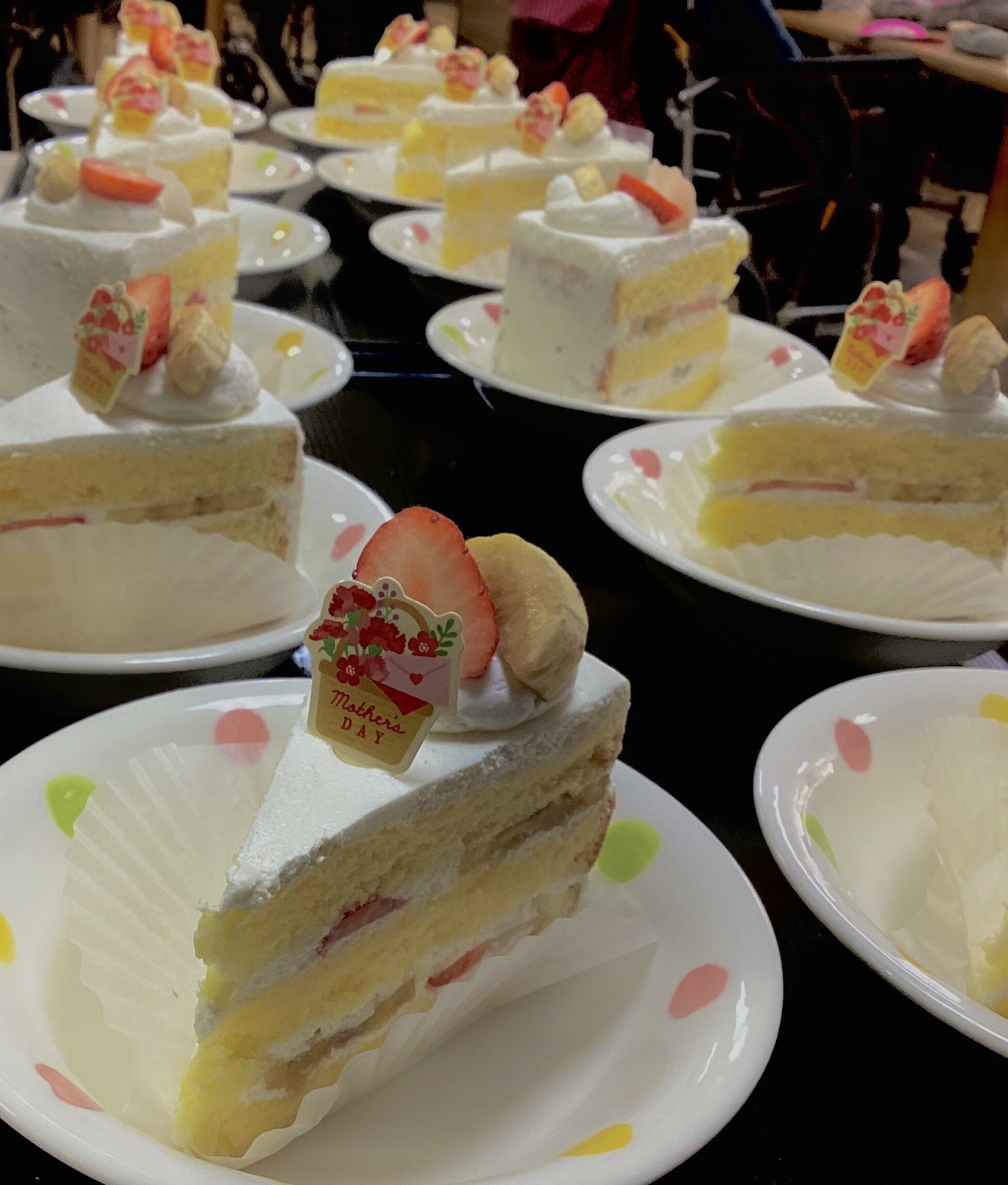 先日母の日におやつでケーキを皆様に召し上がっていただきました(*゚∀゚*)♡