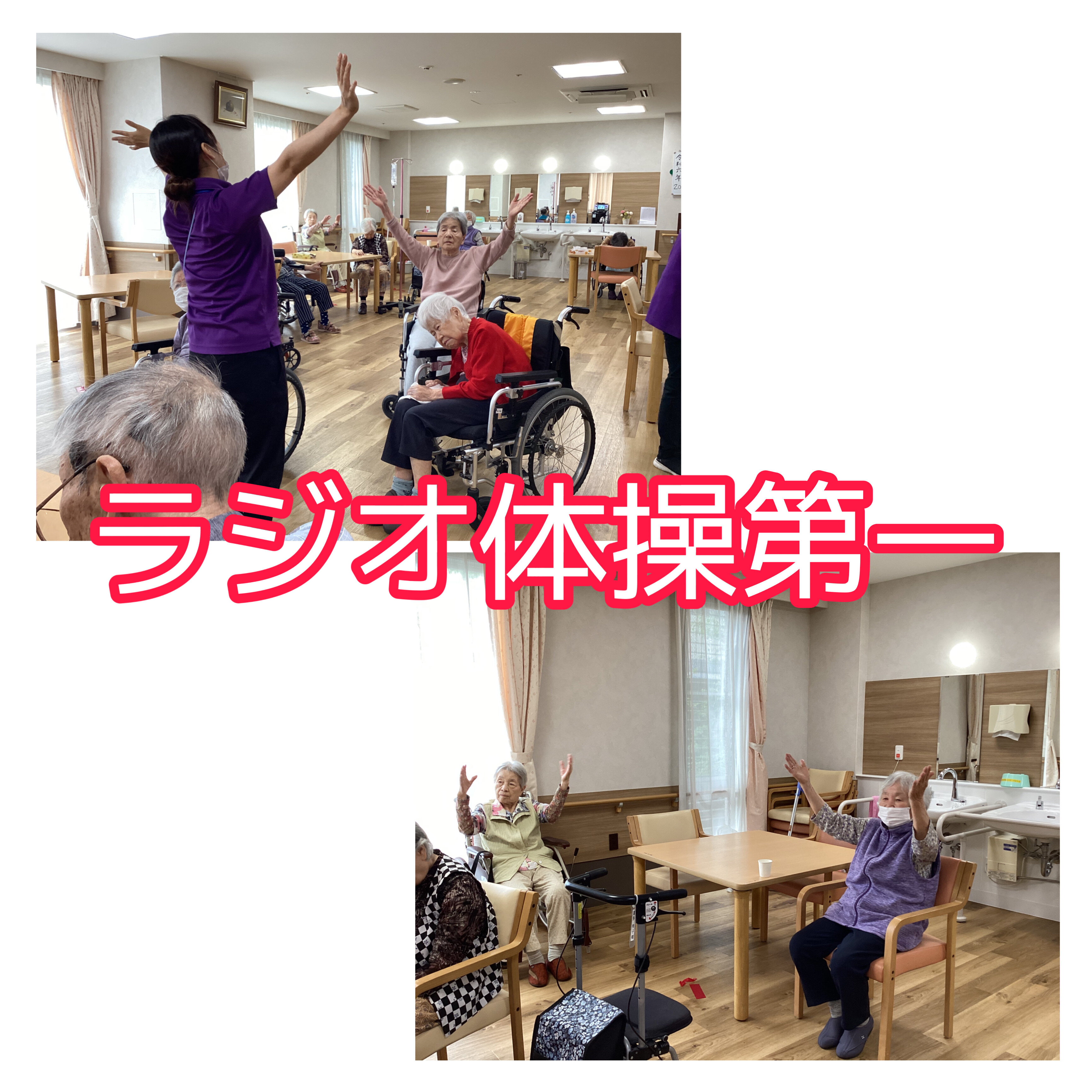 朝のラジオ体操を職員と一緒にされている様子です。