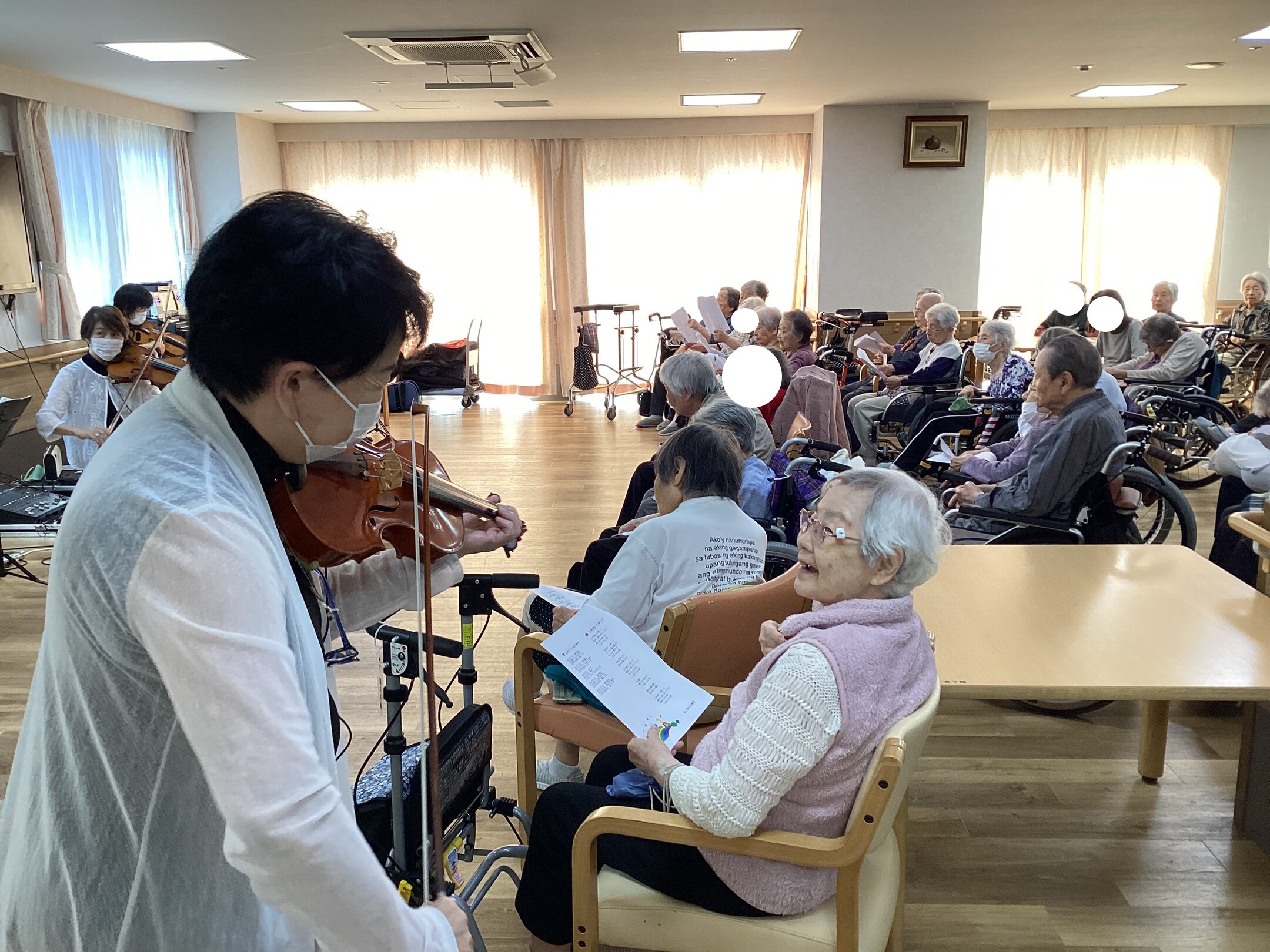 百寿祝い時のバイオリンコンサートの様子です。