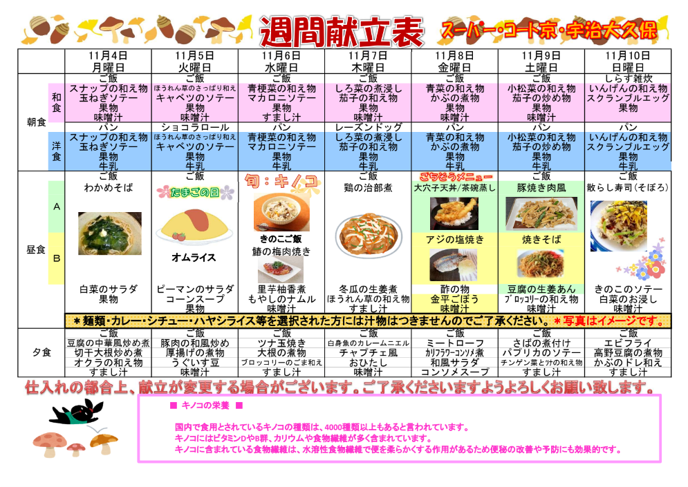 週間献立をお知らせします。