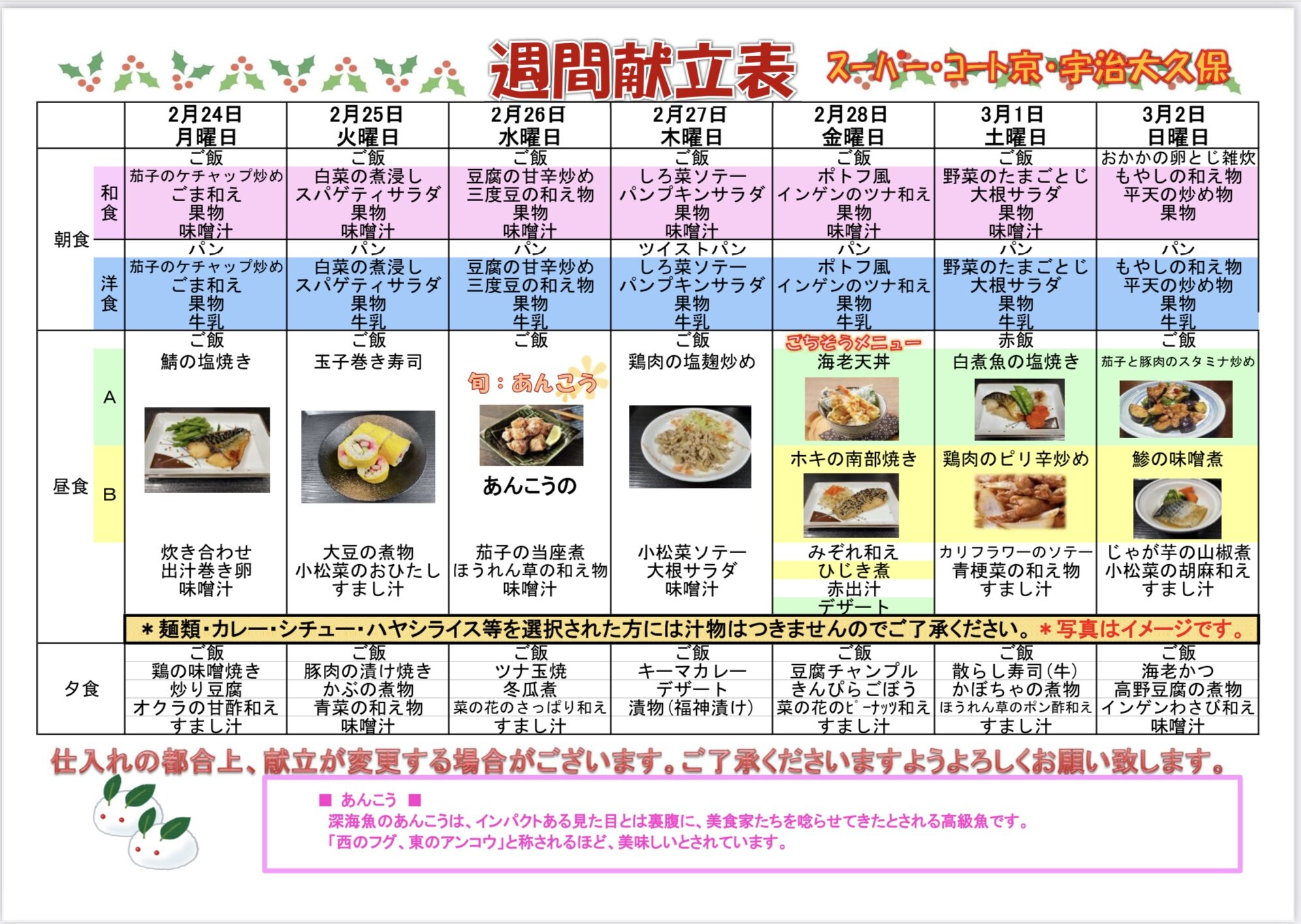 週間献立をお知らせします。