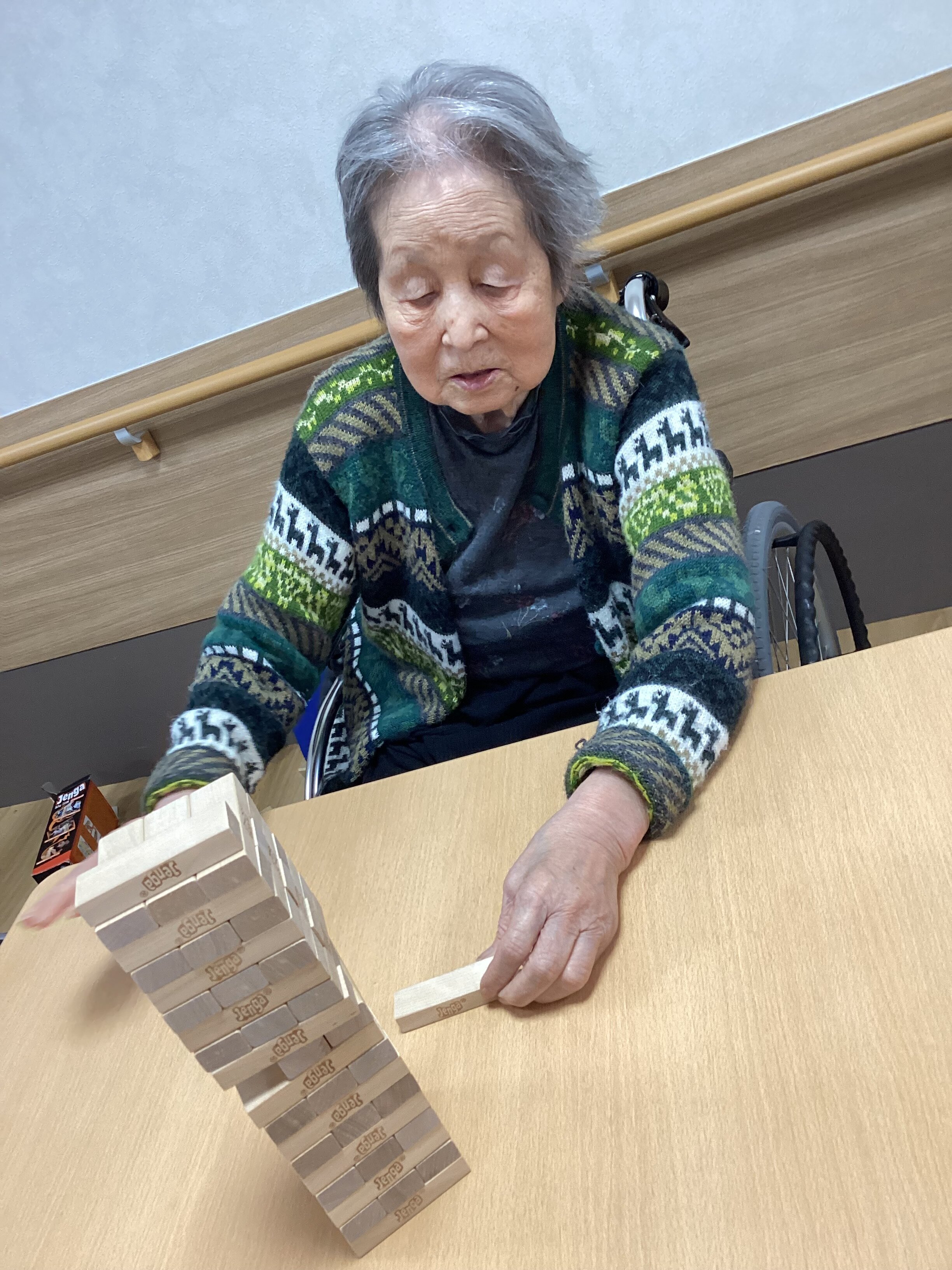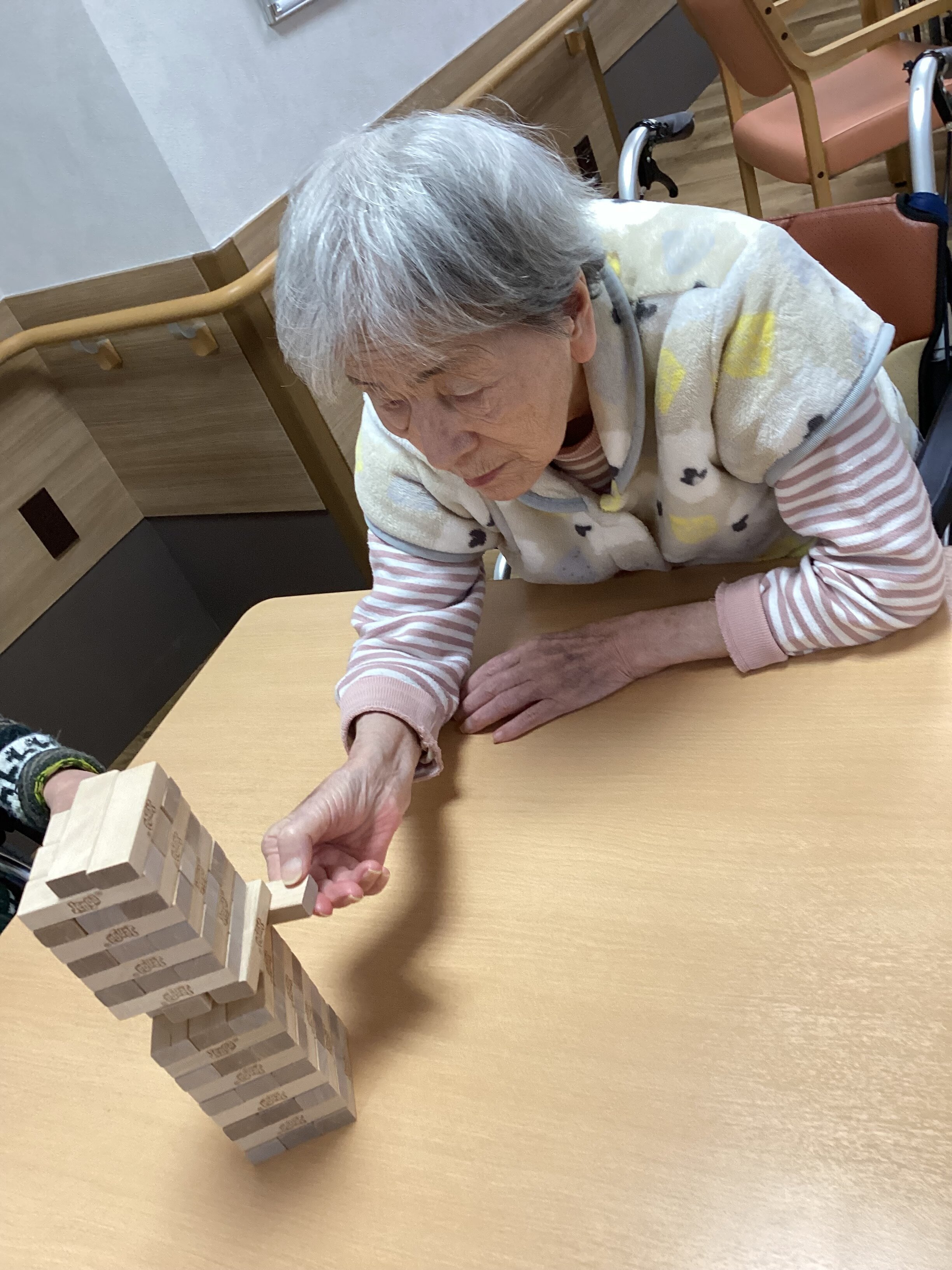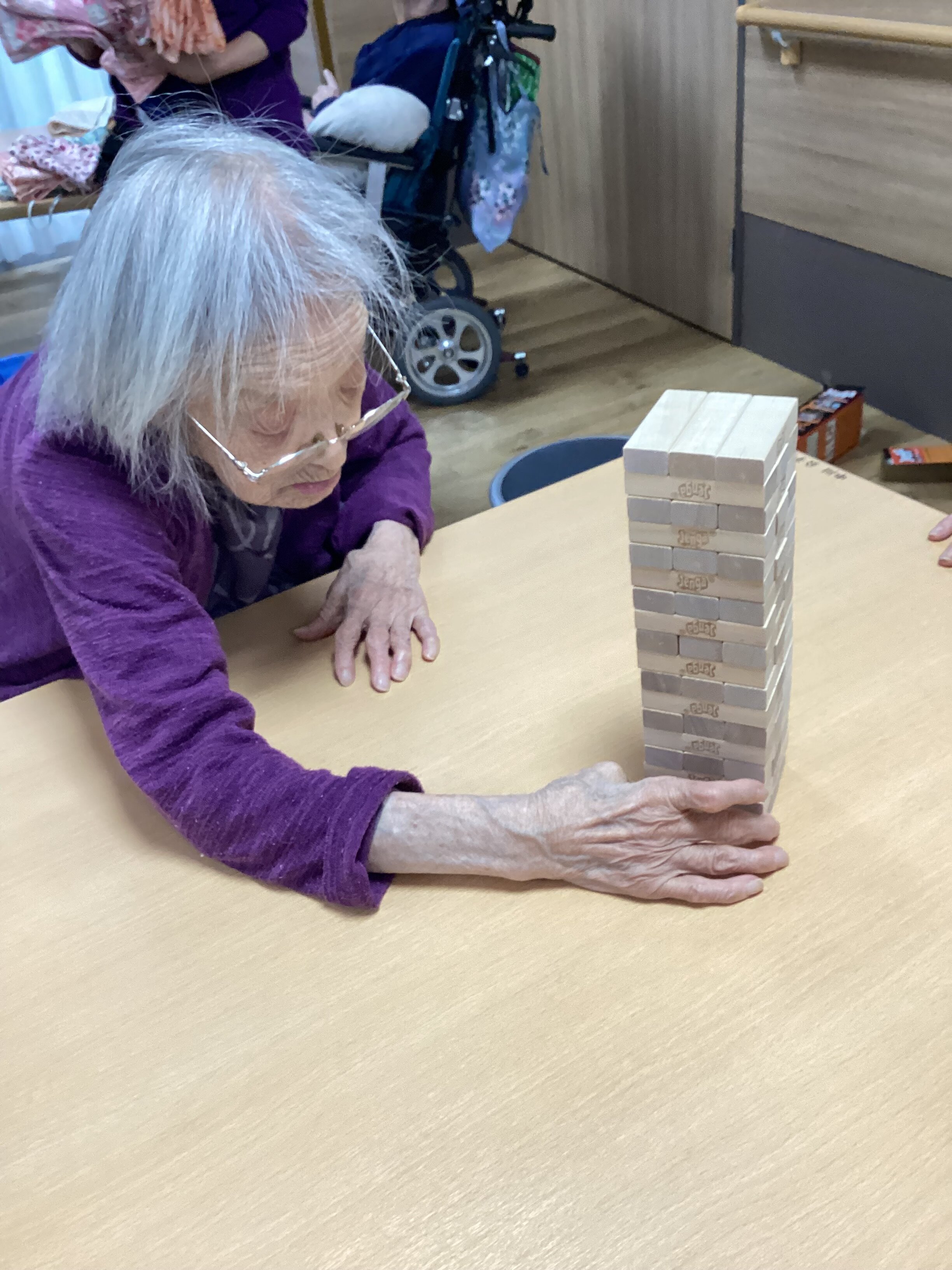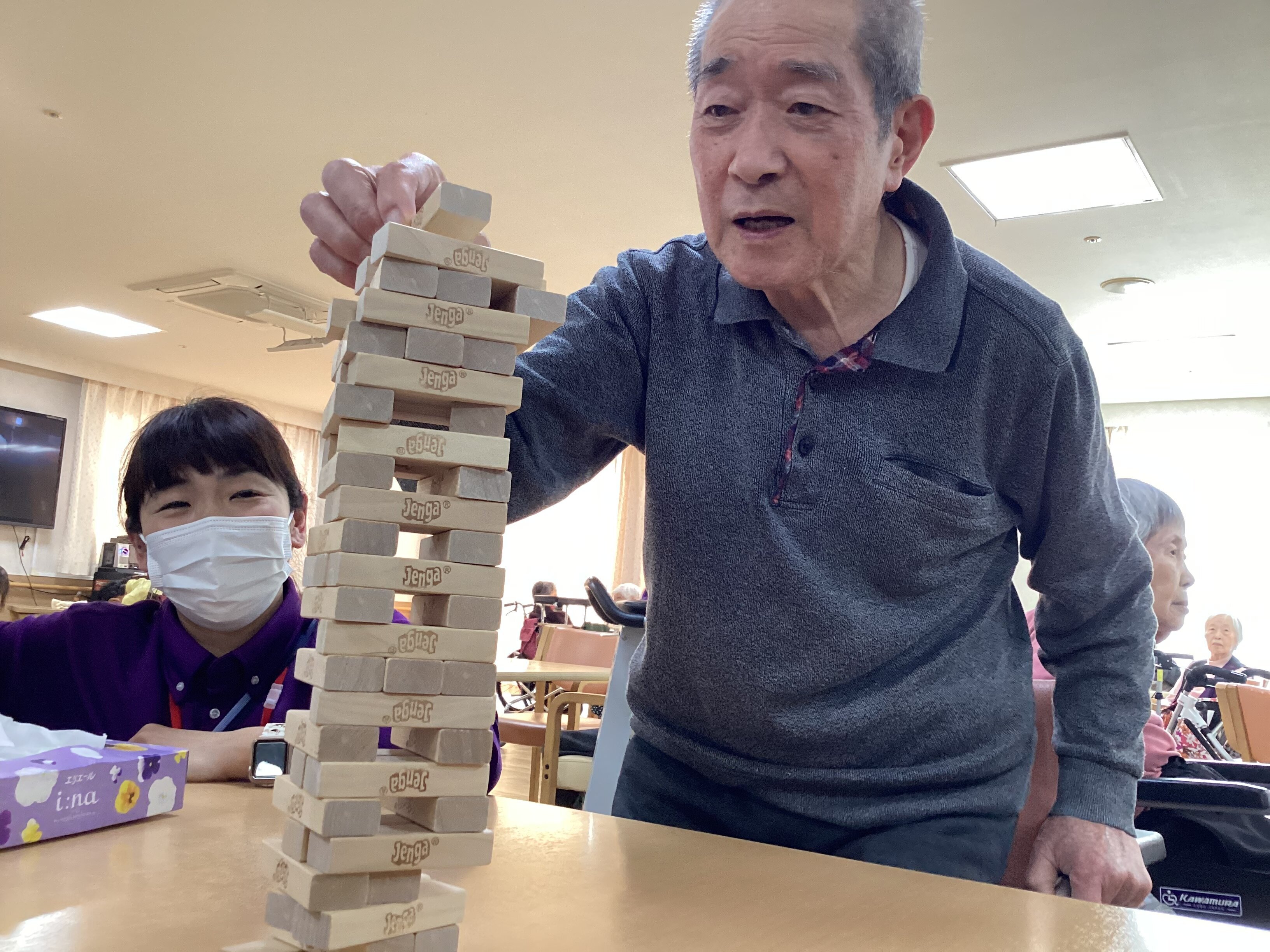ご入居者の皆様と「ジェンガ」で遊びました!