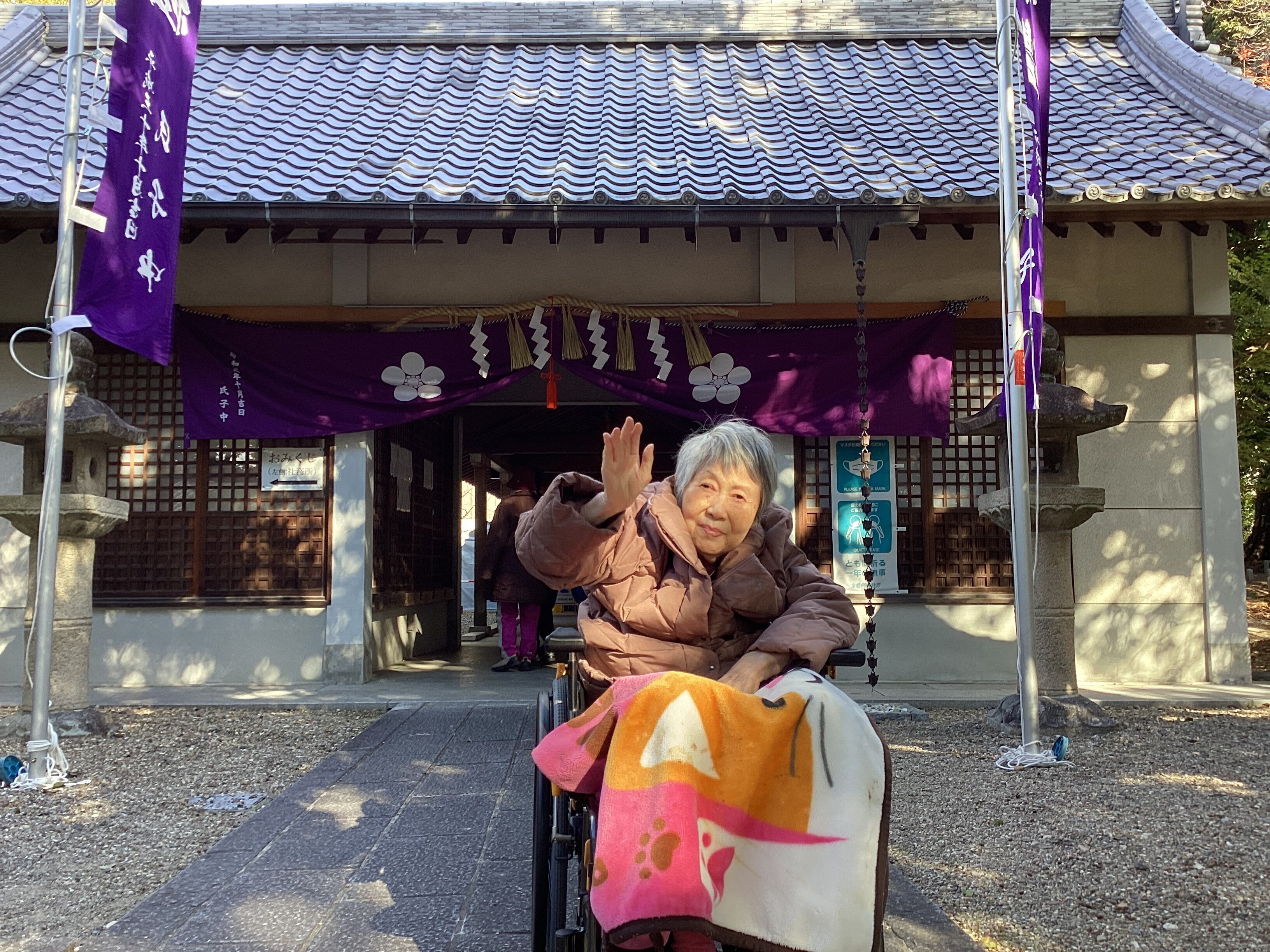 今年も、施設からほど近い旦椋神社(あさくらじんじゃ)へ、ご入居者の皆様とご一緒にお参りしてきました。