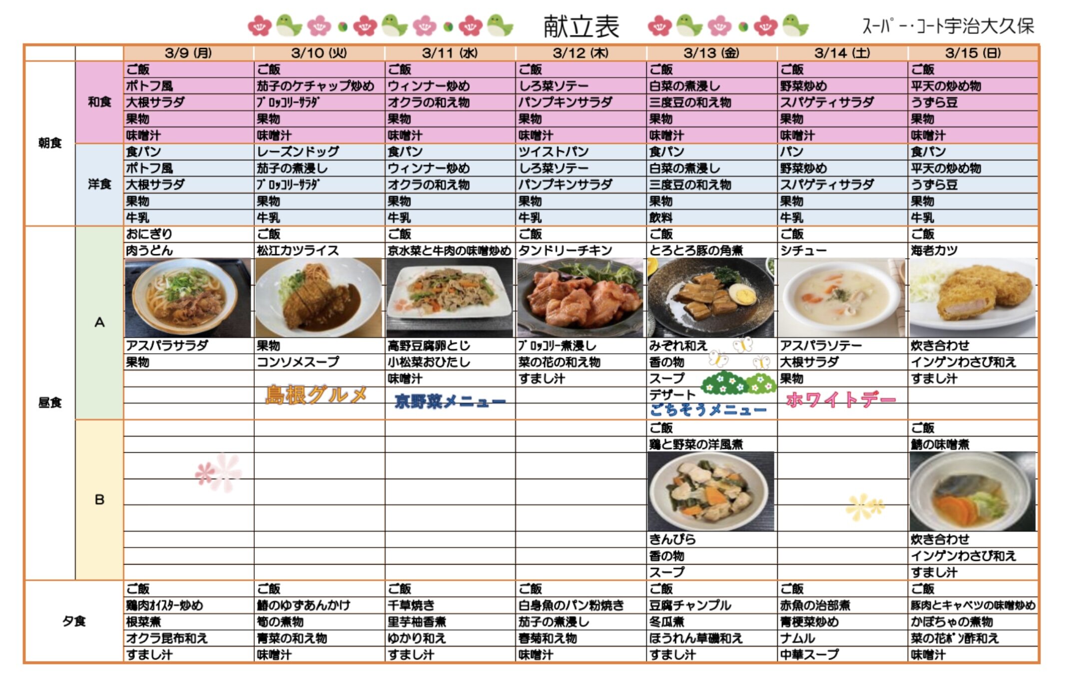 週間献立をお知らせします。