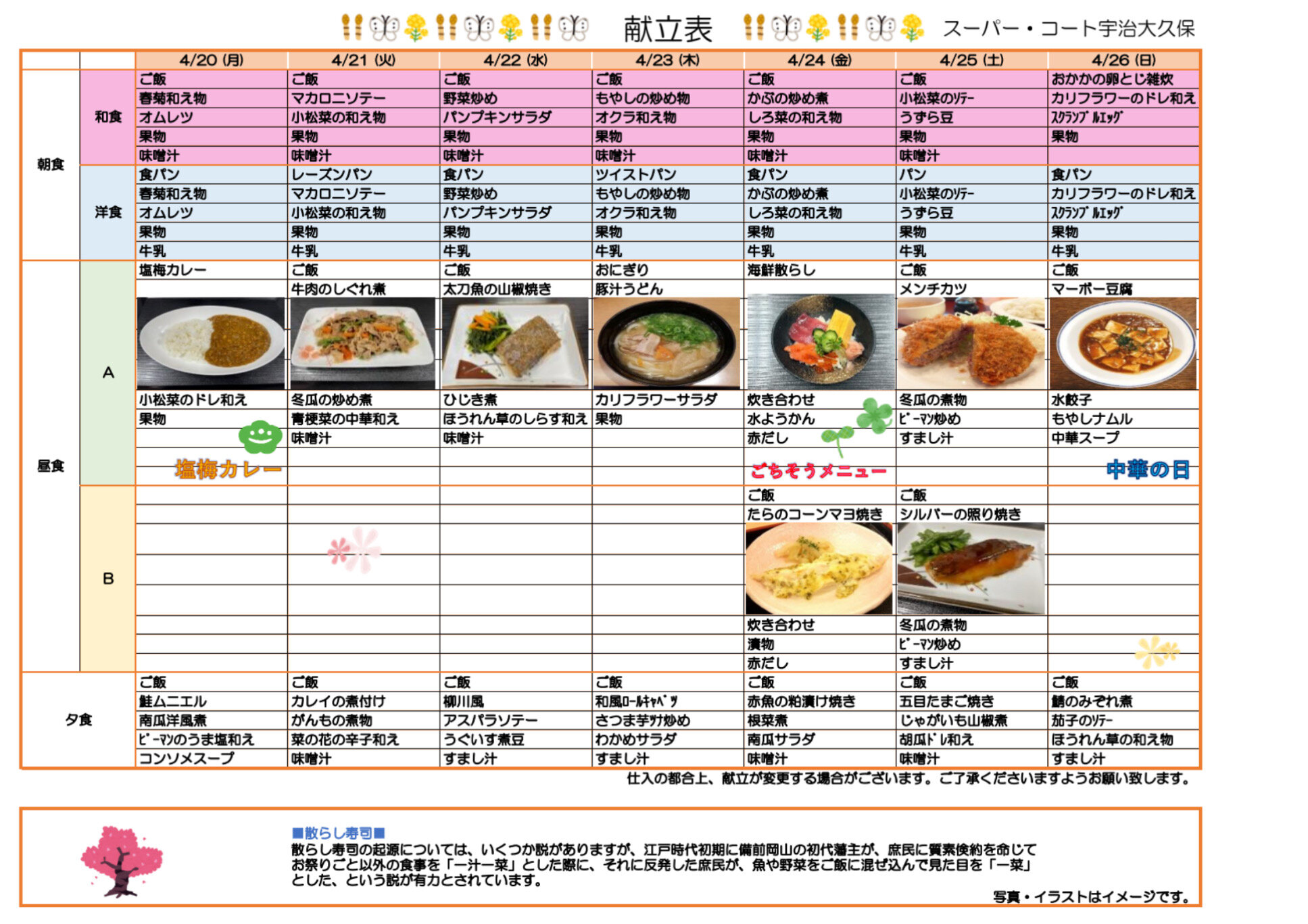 週間献立をお知らせします。