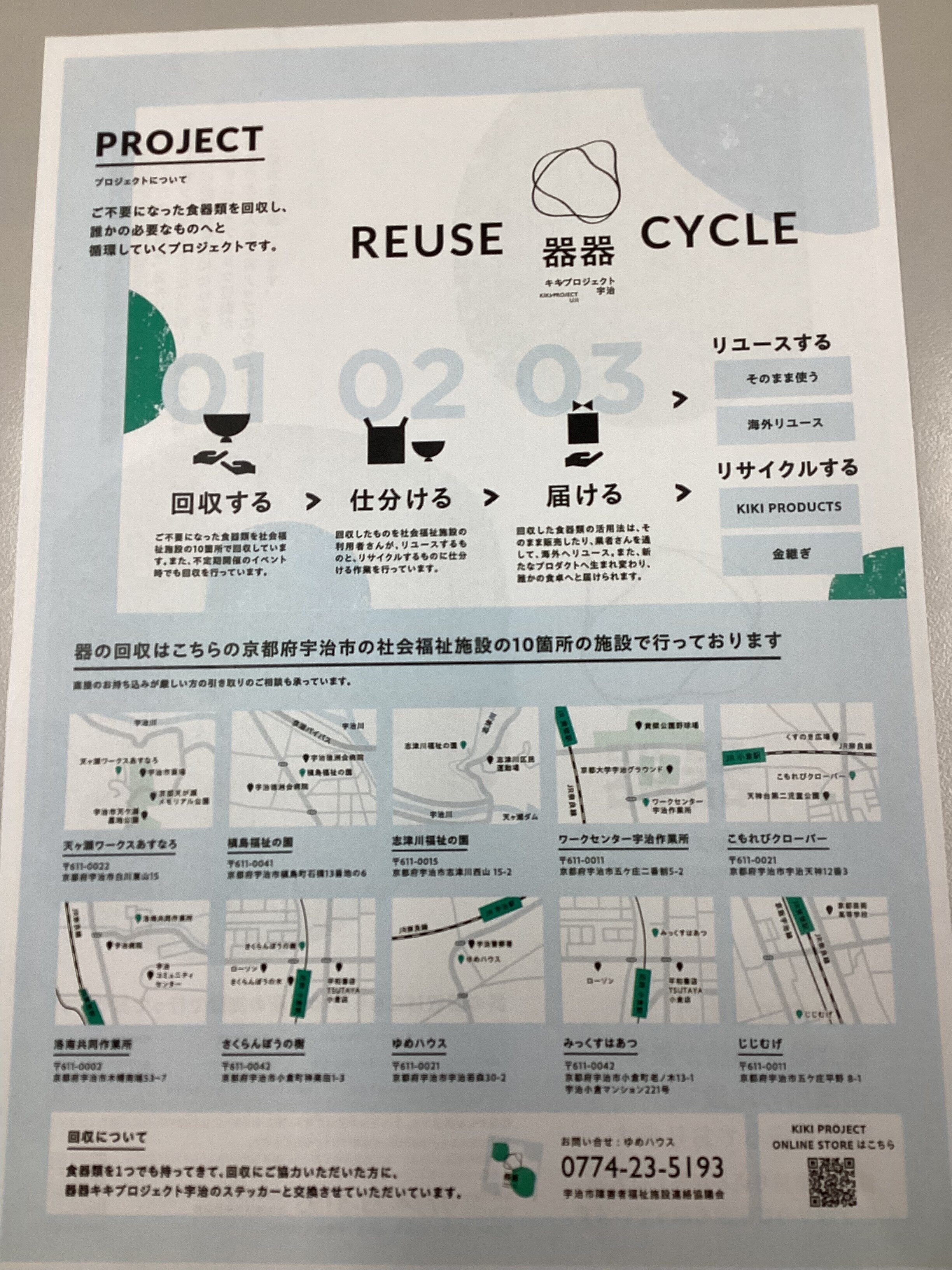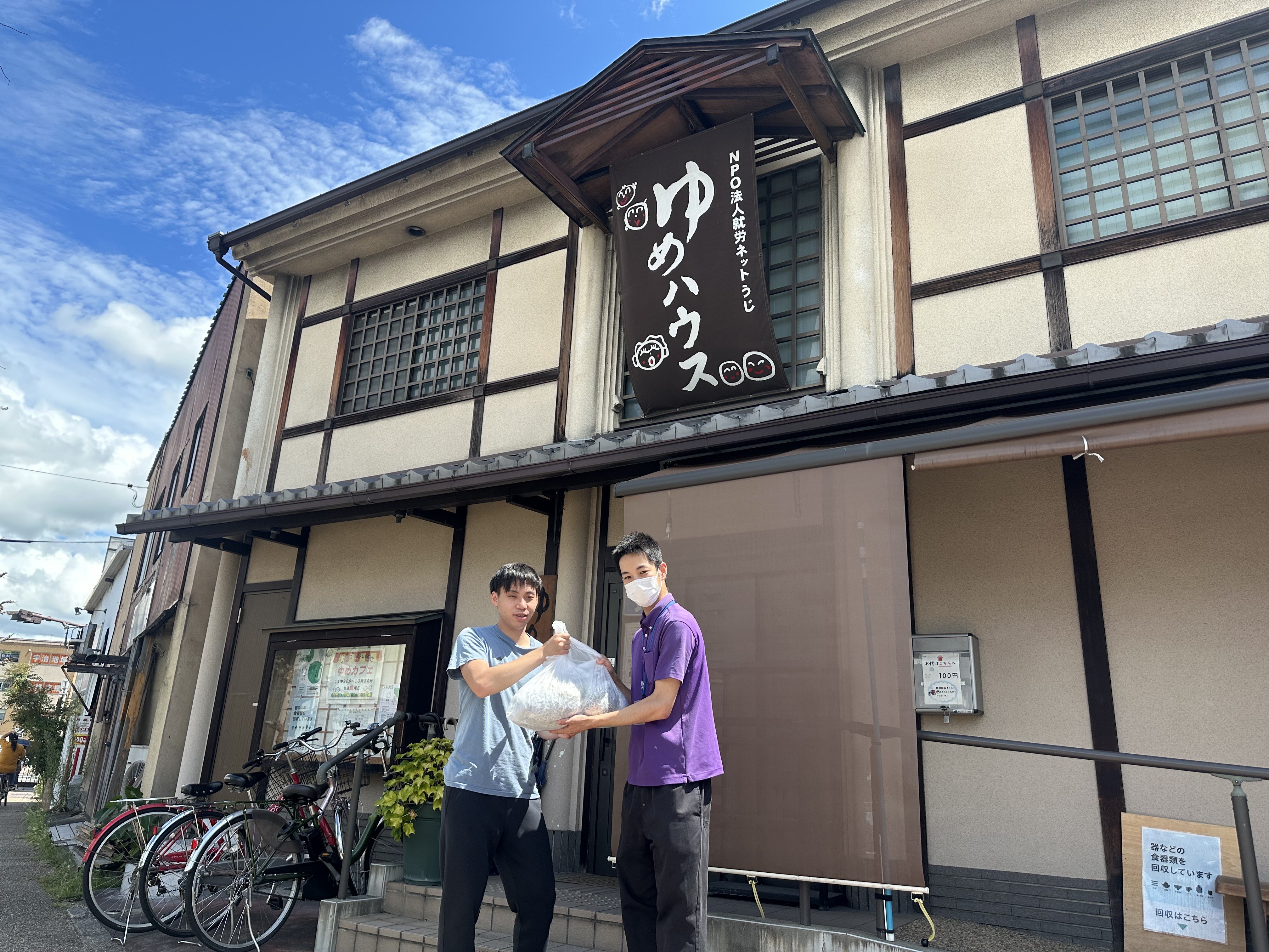 宇治市内にあるコミュニティセンターや、就労支援施設へ持ち込みしています。