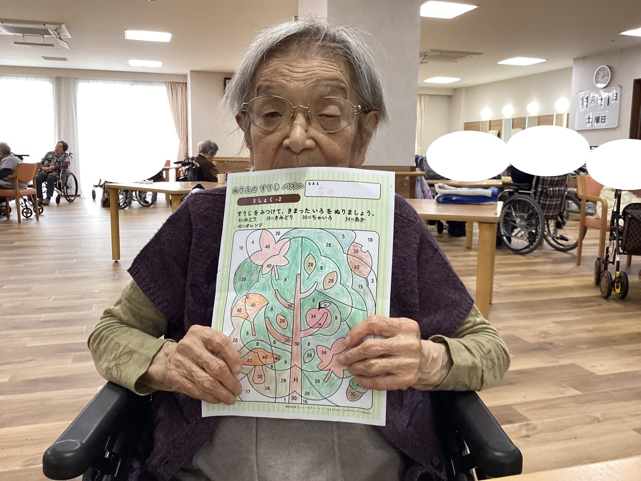今日は塗り絵をお二人で協力して行っている姿を見かけました^^