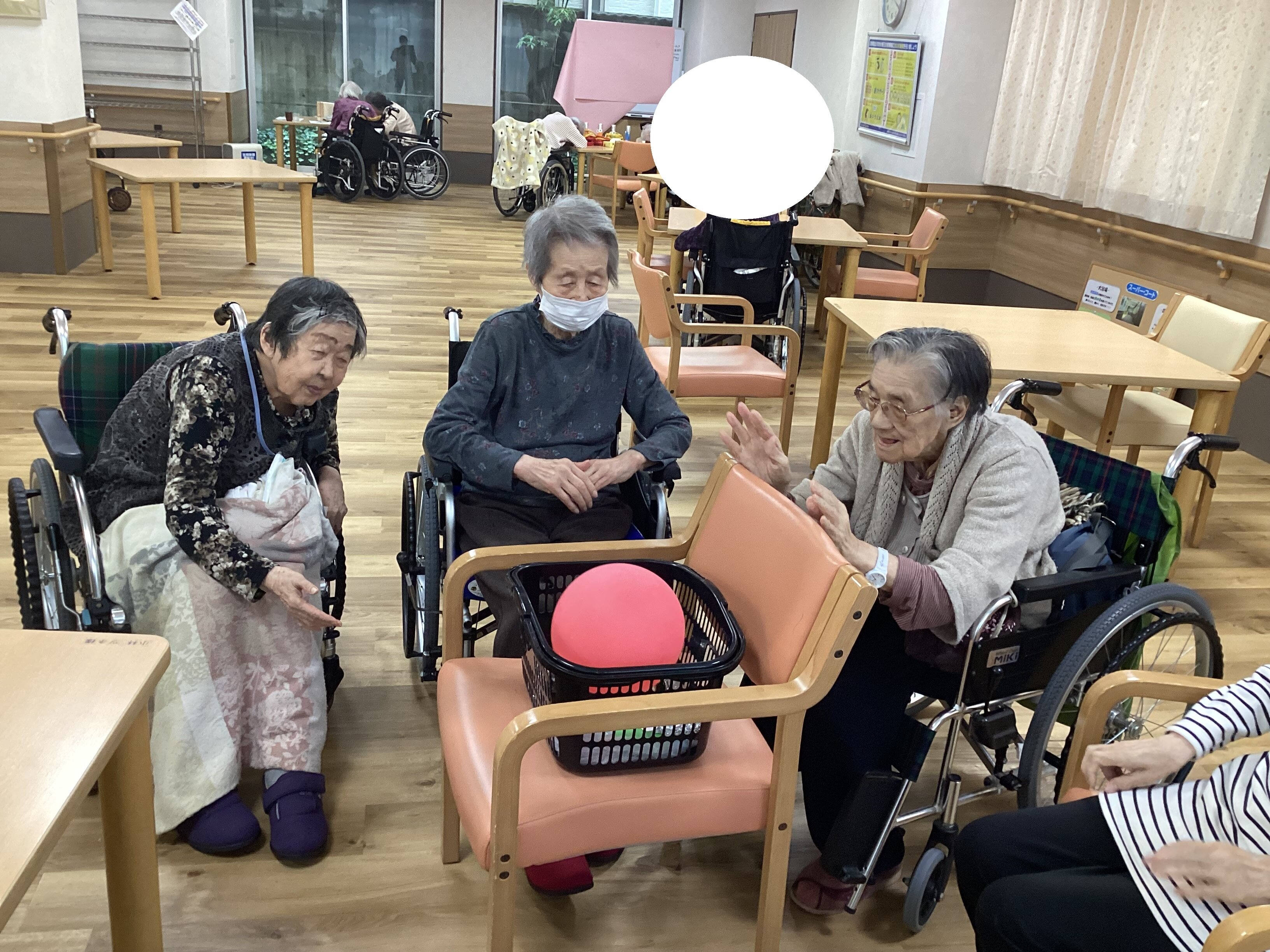 風船を落さないようみんなで繋げて最後カゴに入れるというものでしたが