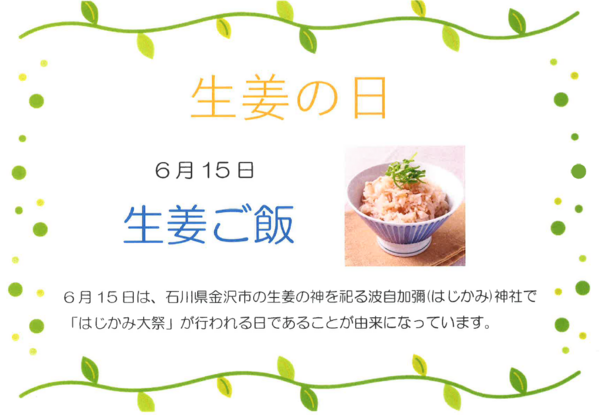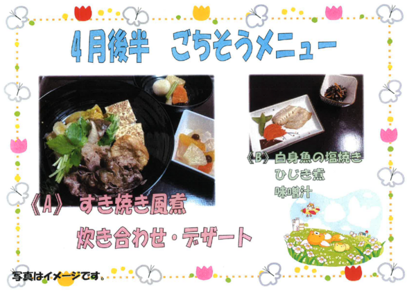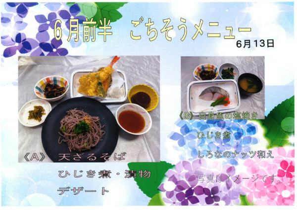 今月は、昼食のごちそうメニューを3回予定しております。