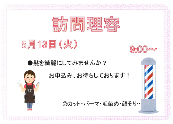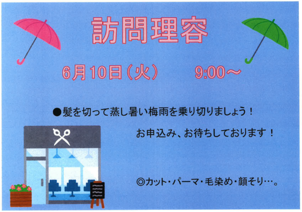 今月は10日(水)に訪問理容を予定しております。
