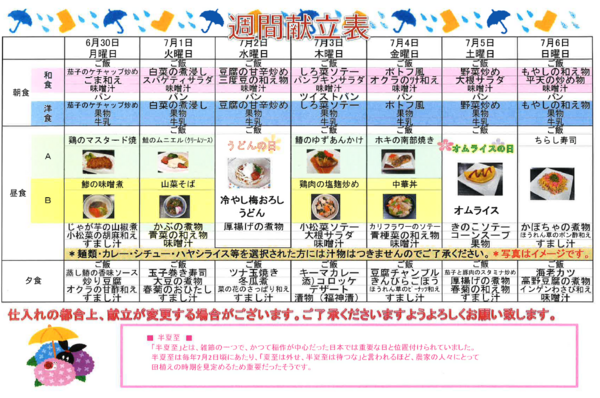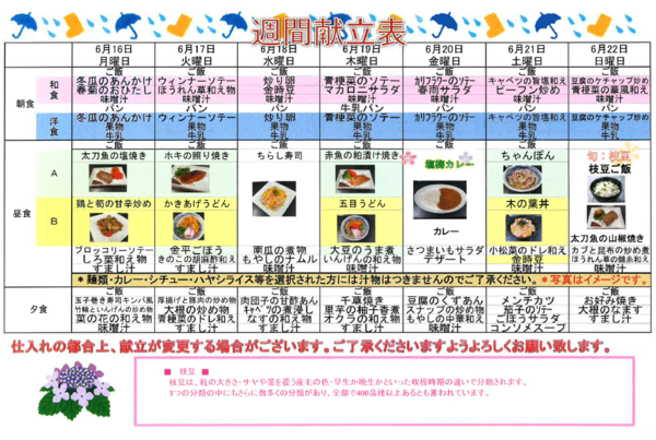 11/24~11/30最終週の献立のご案内です。