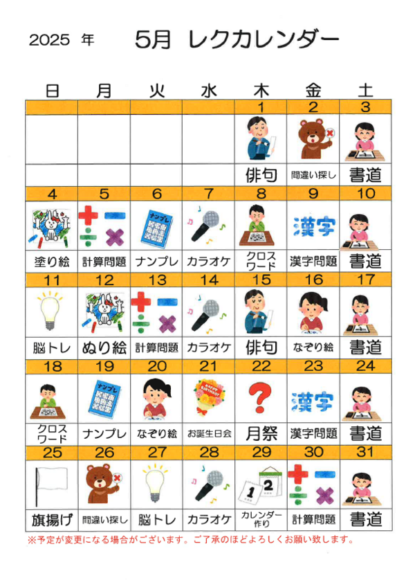 今年最終月、レクの数々をお楽しみ下さい。
