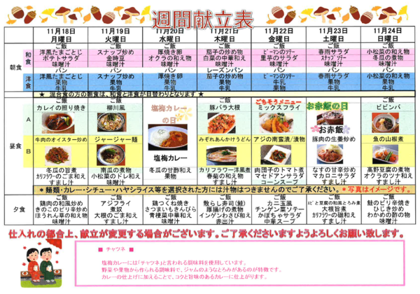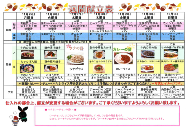 今週は、水曜・金曜以外は、選択メニューとなっております。