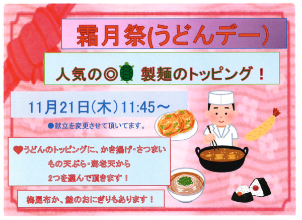 通常の献立を変更し、人気の〇亀製麺のトッピングで