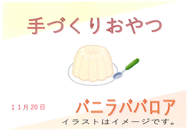 ♡今月の手作りおやつは、バニラババロア美味しそうです。