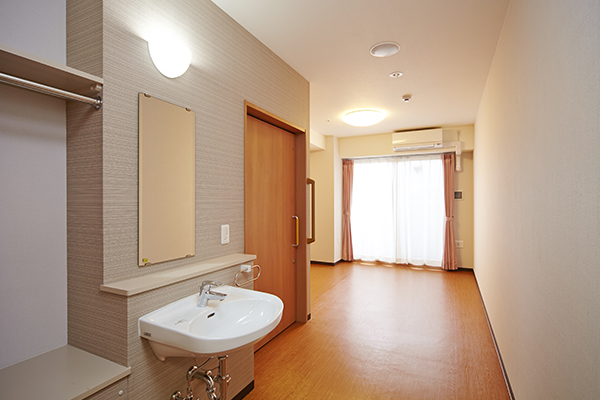 エアコン、カーテン、照明器具、ナースコールにつきましては居室に備え付けております。