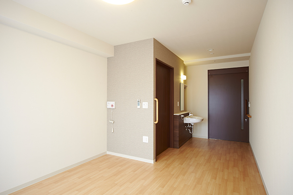 エアコン、カーテン、照明器具、ナースコールにつきましては居室に備え付けております。