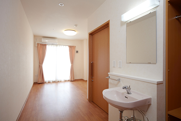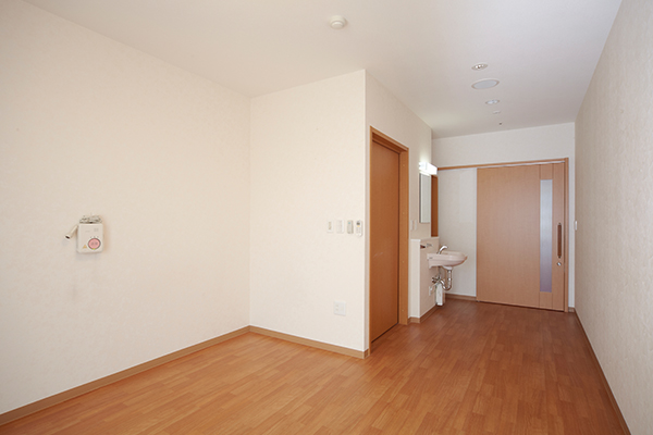 エアコン、カーテン、照明器具、ナースコールにつきましては居室に備え付けております。
