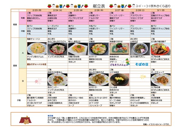 朝と昼は選択食となっています。アレルギーのある方は代替の食事も対応致します。