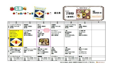 | その他 | 外出などで食事が不要な場合は、3日前までにお申しつけ下さいませ。 アレルギーなどございましたら、ご入所時にご相談ください。 |