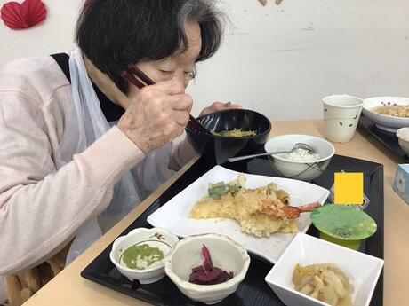 | 食事場所 | 1階食堂と2階食堂にてお召し上がりいただきます。 1階の食堂では、お食事の介助やお手伝いが必要な方がお食事をされておられ。2階の食堂では、職員が見守りを行いながらお食事を召し上がって頂いております。 なお、当日の体調によって移動が難しい方は、お部屋へ配膳いたします。 |