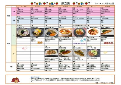 | その他 | 外出などでお食事が不要な場合は、2日前までにスタッフにお申しつけ下さい。 また、アレルギー等ございましたら、ご入居時にご相談ください。 |