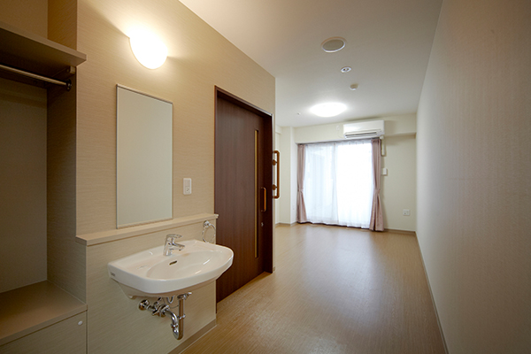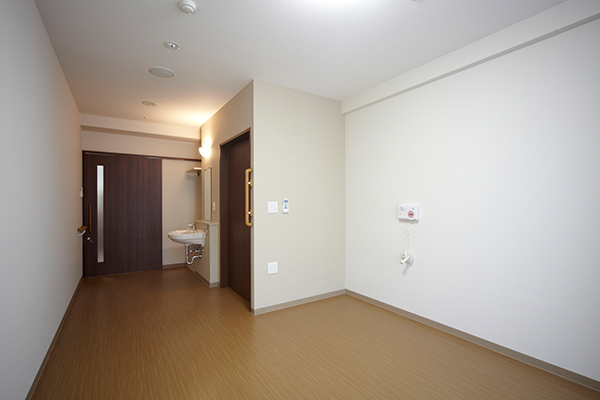 エアコン、カーテン、照明器具、ナースコールにつきましては居室に備え付けております。