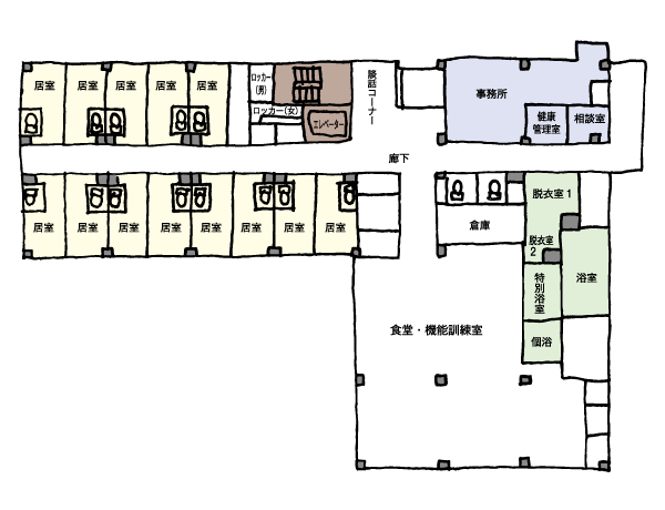 医療行為が必要な方や寝たきりの方などもご入居いただけます。