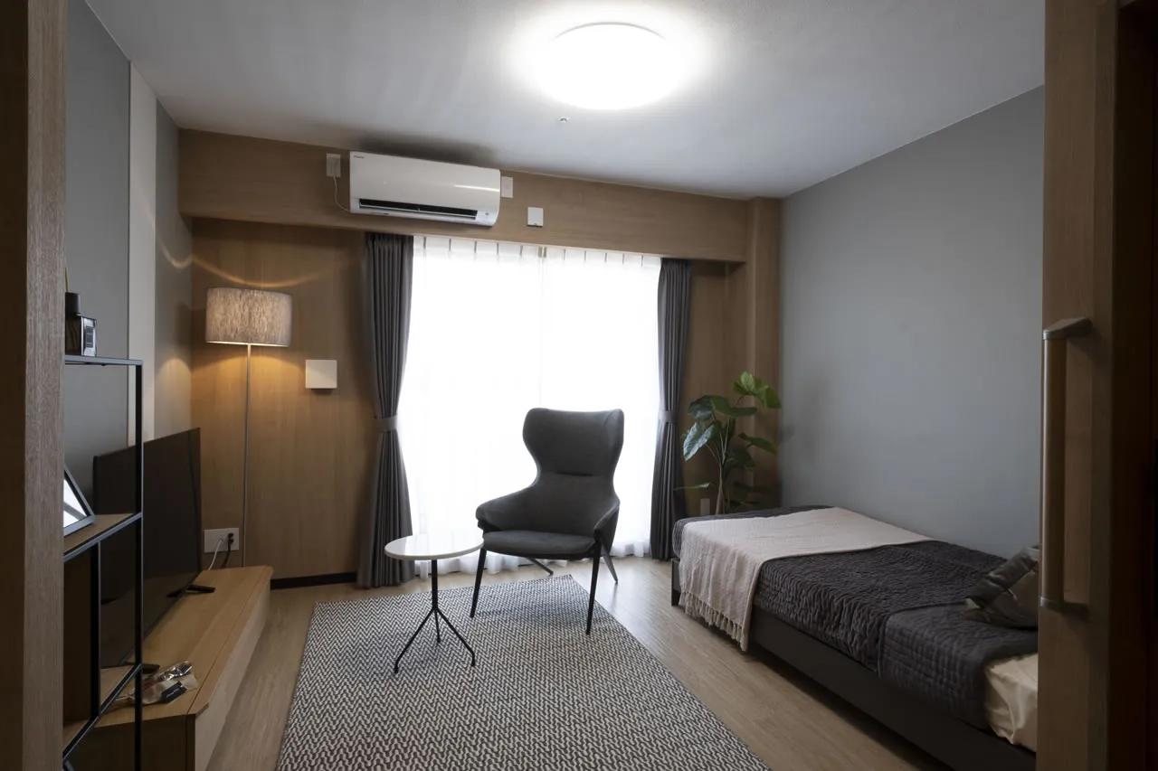 | 定員 | 全76室 ・一人部屋:68室(トイレ、洗面、冷暖房付) ・二人部屋:8室(トイレ、洗面、冷暖房、ミニキッチン付) ※各居室オプションにて赤外線離床センサー設置可能 |