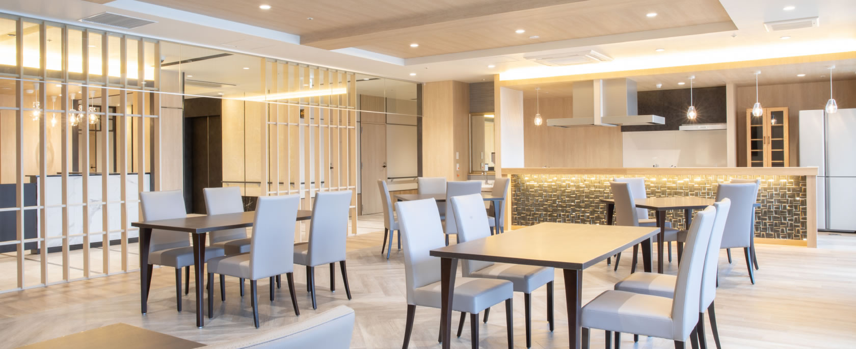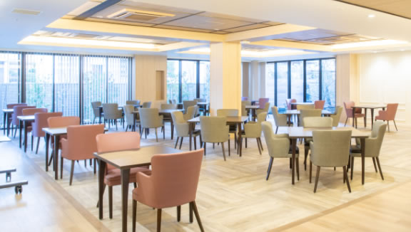 共用施設 レストラン・フィットネスルーム、健康管理室、理美容室、談話スペース、 一般浴場・特別浴室、個別浴室、外来宿泊室、他
