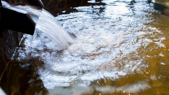 館内で利用する水はすべて「MICA加工」を施した健康イオン水です。