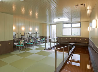 滑りやすく転倒の危険が多い浴室や脱衣室に、畳を敷き詰めたお風呂です。