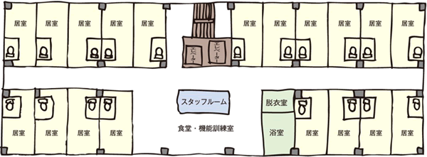 また、当ホームはユニット制を導入しておりますので安心して生活して頂いております。