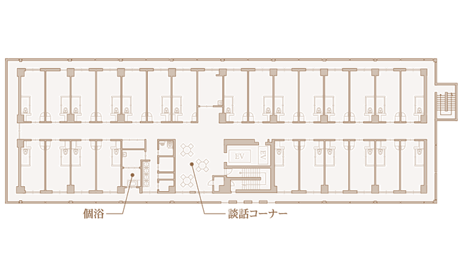 | 共用施設 | レストラン・機能訓練室、ティーラウンジ、フィットネスルーム、談話コーナー、浴室、外来宿泊室、理美容室 他 |