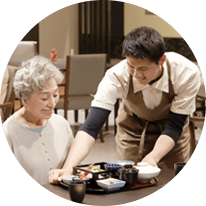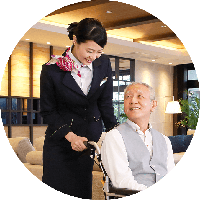 介護士資格を持つコンシェルジュが、ご入居様のお出迎えやお見送りはもちろん、日々の様々なご相談等、毎日を上質にお過ごしいただくために様々なサポートをいたします。