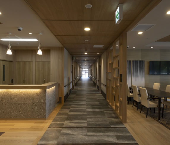 | 共用施設 | レストラン、機能訓練室、ティーラウンジ、健康管理室、フィットネスルーム、談話スペース、理美容室、一般浴場・特別浴室(1階)・個浴(2階・3階・4階)、外来宿泊室、 他 |