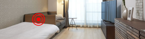 認知症フロアの居室は赤外線離床センサーが設置可能。日々の生活の見守りや、いざという時の原因追究にも役立てられるよう備えています。