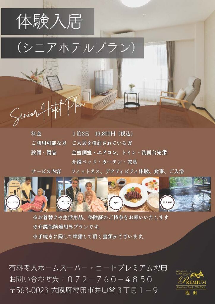 【スーパー・コートプレミアム池田】体験入居「シニアホテルプラン」のご案内