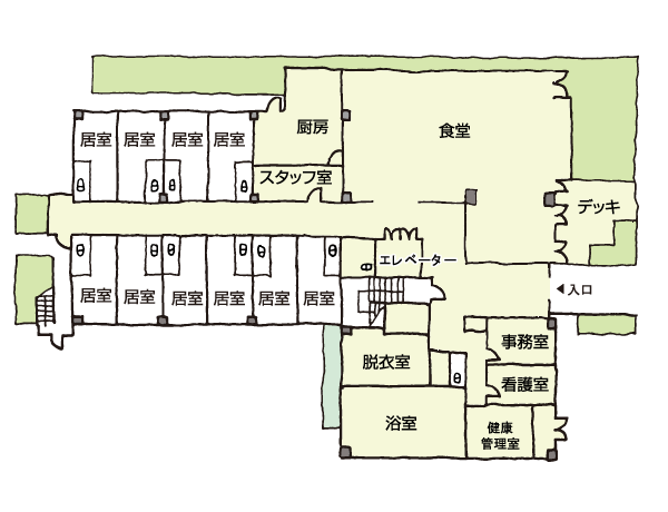 ご入居者が常に安全・清潔・イキイキした生活ができるように、スタッフがお手伝いできるように取組んでおります。