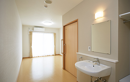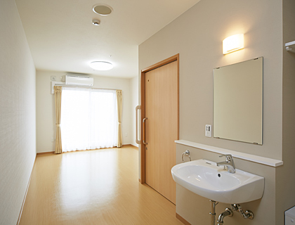 エアコン、カーテン、照明器具、ナースコールにつきましては居室に備え付けております。