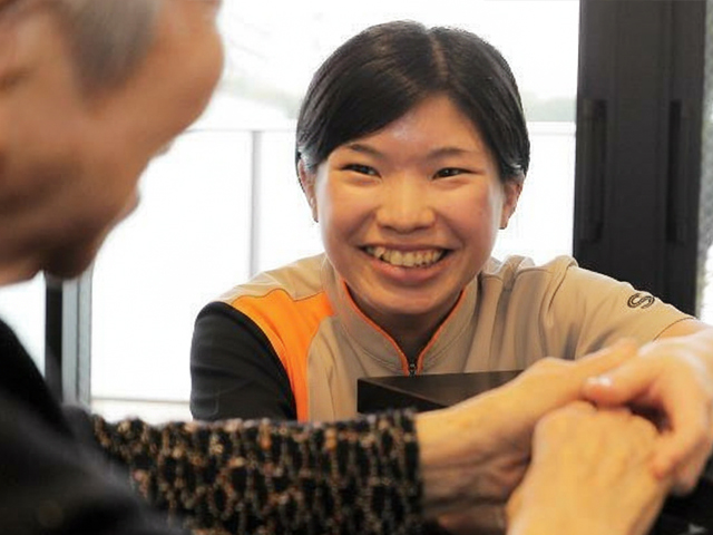当社には新人受け入れ制度があり、担当の先輩に1対1で仕事を教えてもらえます。新人受け入れ制度の先輩からは最初に、「1人で悩まないですぐに質問してね」と言っていただき、とても心強く思いました。新人受け入れ制度の先輩が忙しそうなときは、教育担当以外の先輩も快く教えてくださいましたね。今では私がエルダーの立場。新人さんに指導するときは、認知症のご入居者への対応など新人時代に悩んだことを思い出し、同じ悩みを抱えていないか定期的に聞くように心がけています。 ご入居者への対応で心がけているのは、友だち感覚ではなく、職員とご入居者のけじめをつけることです。丁寧に、でも堅すぎず。難しいですが、距離感は大切だと思っています。また、レクリエーションでカラオケをするとき、ご入居者や年上のスタッフに好きな歌をリサーチするなど、ジェネレーションギャップを埋める工夫もしています。逆に、大ブームになったタピオカは私が教えました。