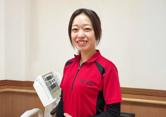 スーパー・コートは、機能訓練指導員同士だけではなく、介護士、ケアマネジャー、 看護師など多職種連携が進んでいます。 私自身、この多職種連携により、他職種の人の話が聞け、新しい知識が身につき成長できました。 また、当社の充実している教育制度のひとつである「ケアマイスター制度」を利用し、介護士の仕事について学びました。 分かっているつもりでしたが、新しい発見の連続。 介護士のことを深く理解できるようになり、機能訓練指導員としての仕事の幅が広がったように思います。 当社に入るまで大きな会社に勤めた経験がなく、目下ビジネスマナーを勉強中です。 それ以外のことも勉強し、もっと頼れる存在になることを目指します。 私の根本にあるのは、人の役に立ちたいという想いです。 ですので、目の前に困っている人がいれば、たとえば、車いすのフットレストの角度の調整など、機能訓練指導員の領域ではない部分にも率先して手を差し伸べられる「何でも屋さん」になりたいです。